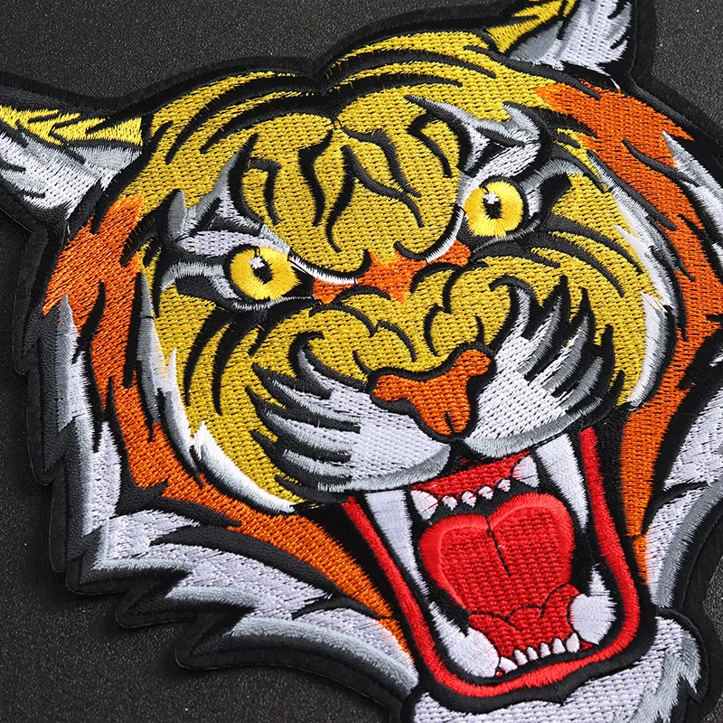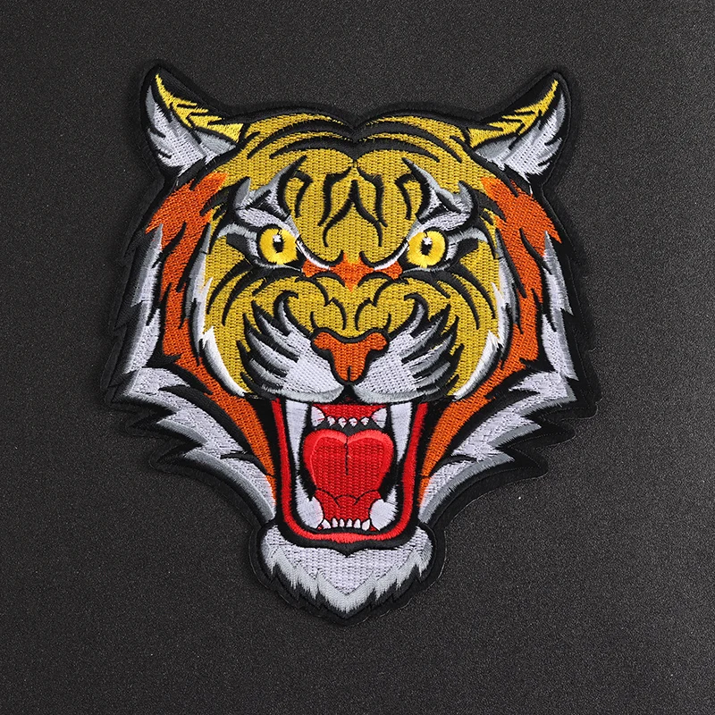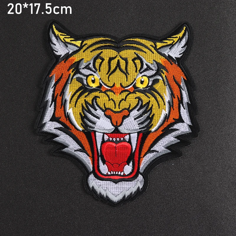Tiger Head Embroidered Iron-On Patch 20×17.5 cm