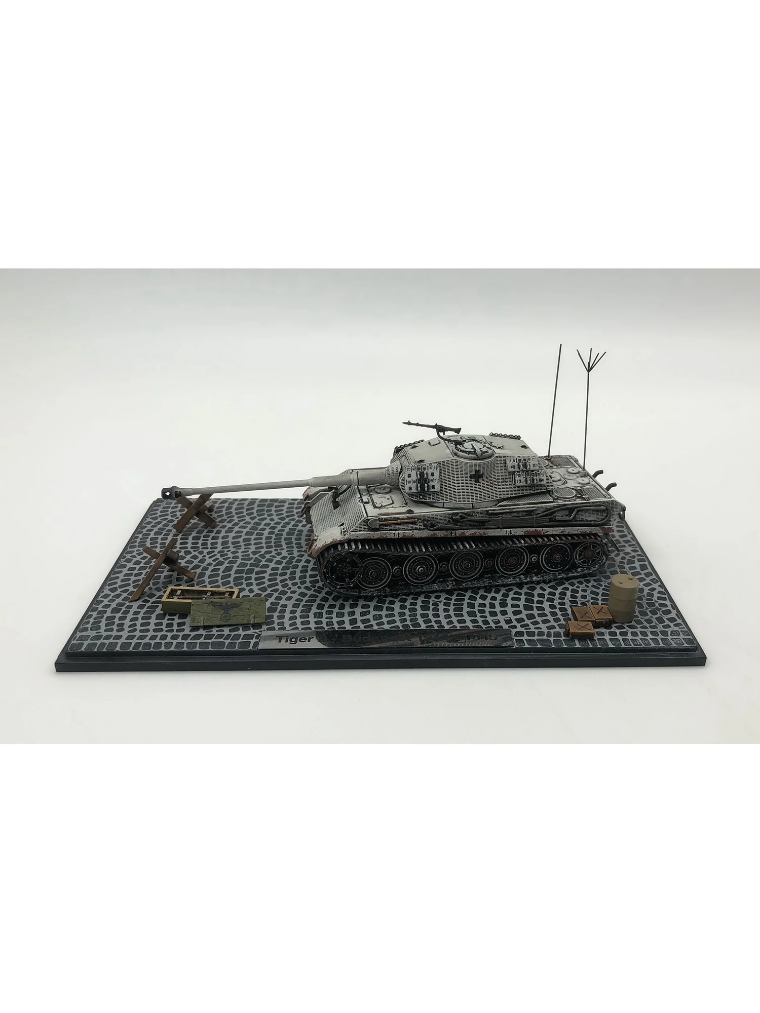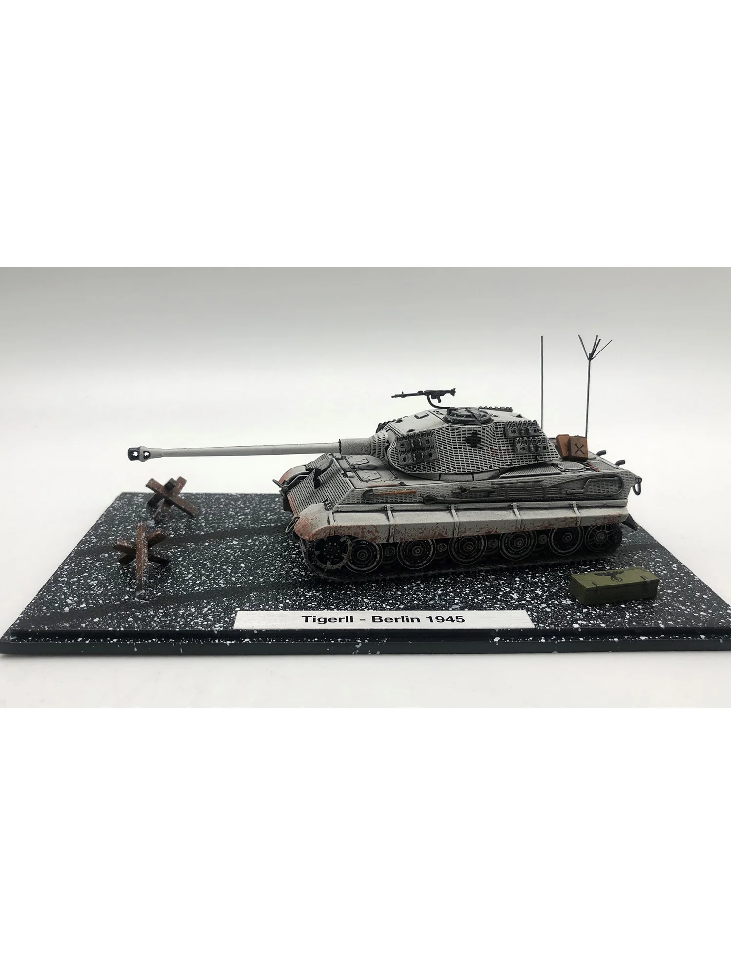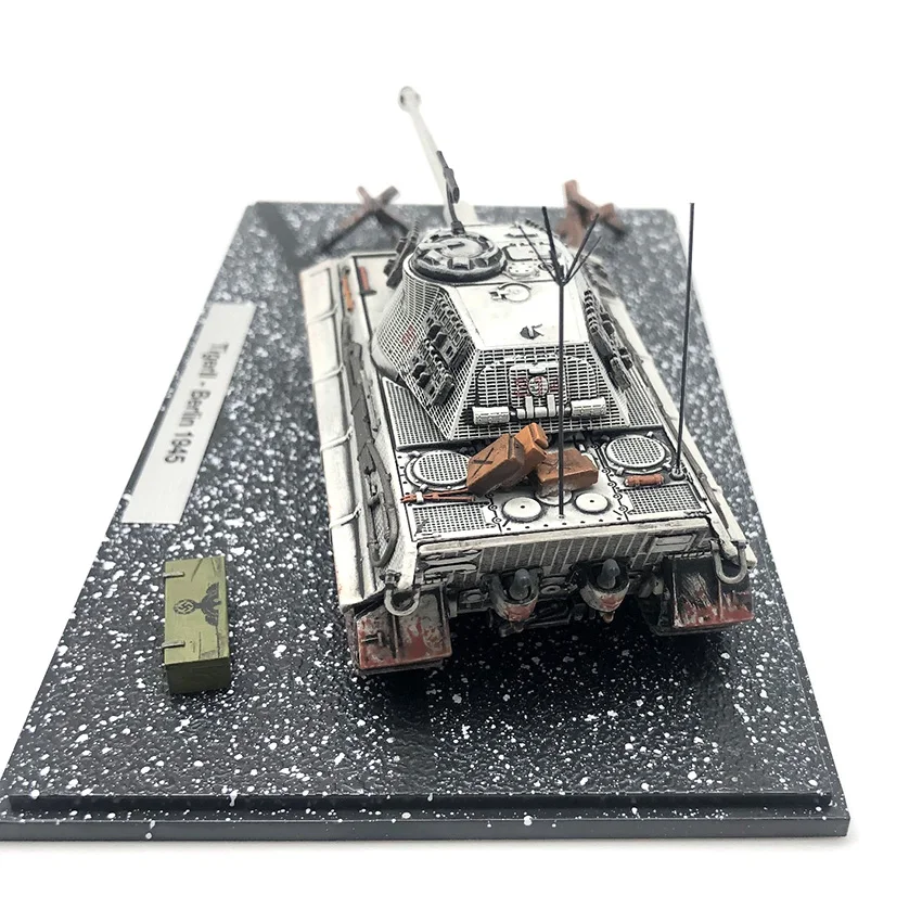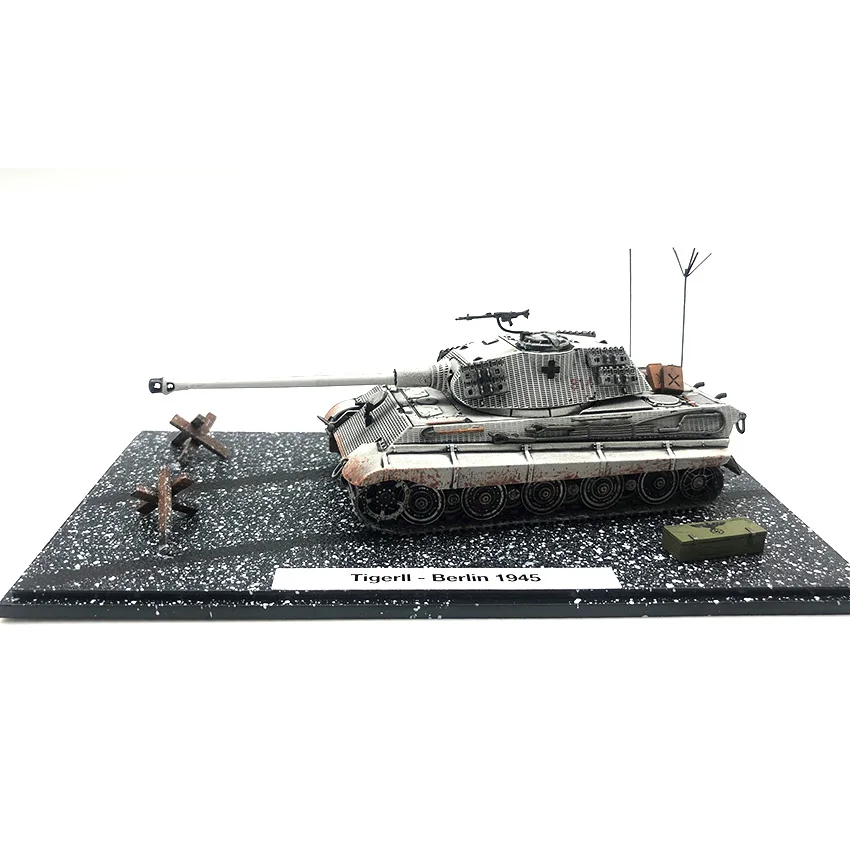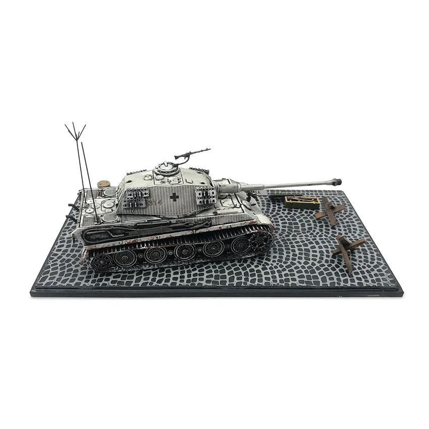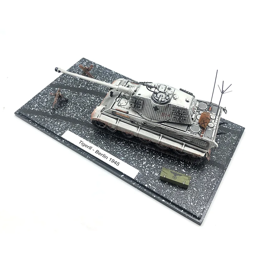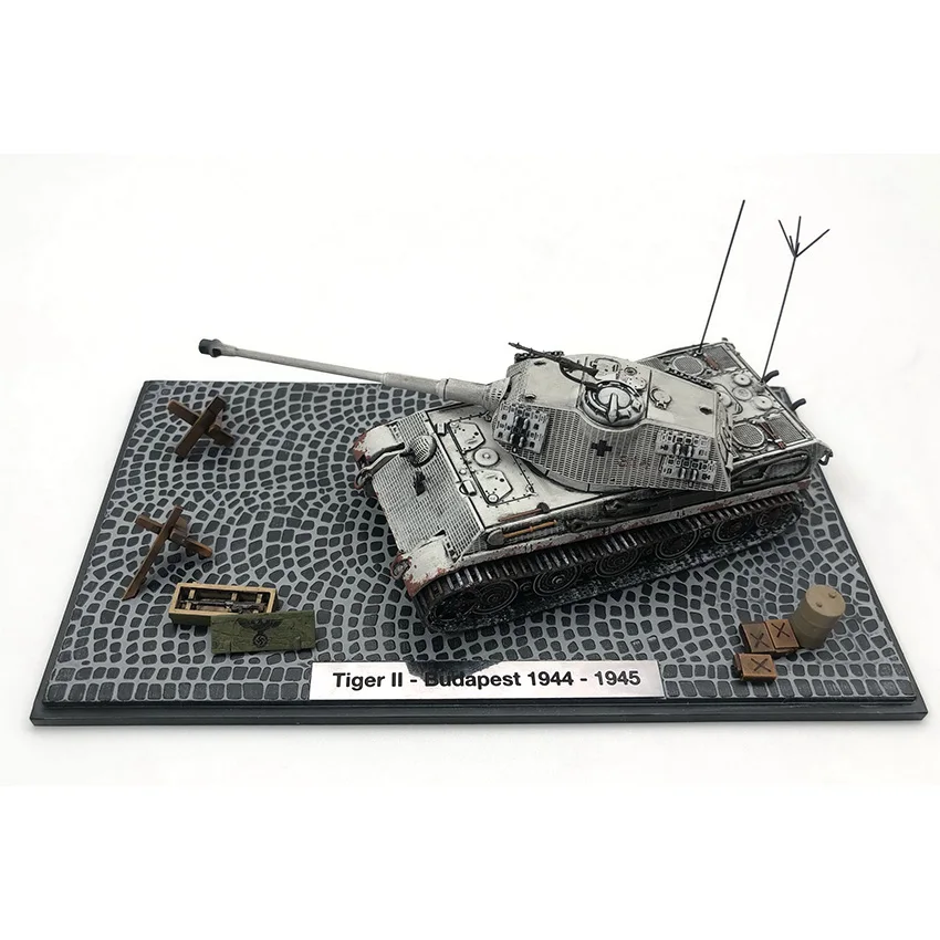 Imagine owning a meticulously crafted replica of the legendary Tiger II tank, capturing the intense battles of Budapest 1944-1945 or Berlin 1945. This highly detailed 1:72 scale model measures 142mm in length, 52.5mm in width, and 41.5mm in height, making it a perfect addition to any military collection. Made from durable diecast metal and plastic, it boasts a weathered, authentic finish that mimics battle damage and aging, while the intricate textures of rivets, hatches, vents, and tread details emphasize realism. The turret rotates 360°, and the barrel adjusts up and down, providing a dynamic display. Whether for display or as a thoughtful gift, this model brings history vividly to life.