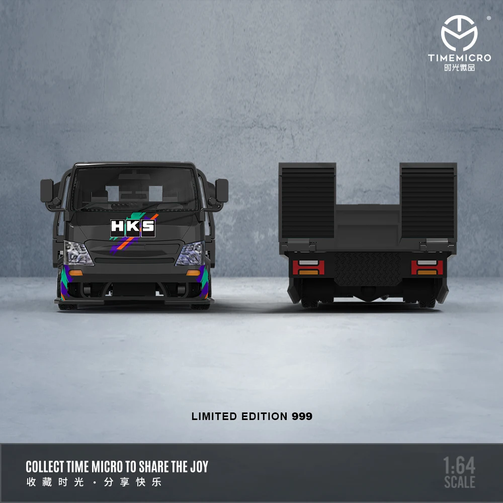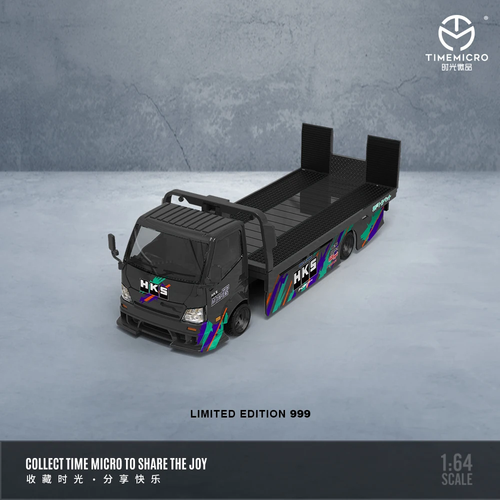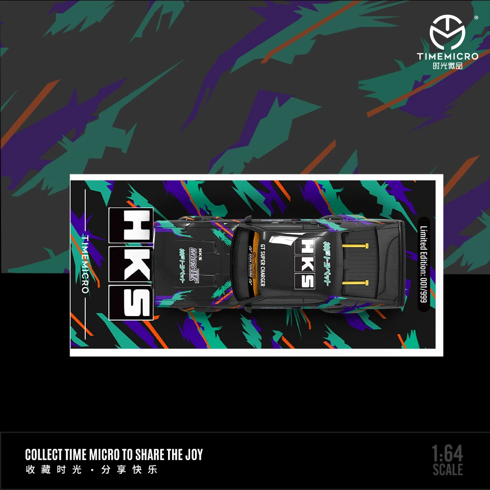 Experience the thrill of owning this exquisitely detailed diecast alloy car model set by TIME MICRO. Crafted in a sleek black finish, the model captures the sporty and aerodynamic essence of the KPGC110, featuring vibrant, colorful stripe graphics that add a dynamic touch. Measuring approximately 7 cm in length and scaled at 1:64, it exudes realism with finely rendered wheel rims, side mirrors, and smooth contours. Included in the set are a flatbed transport trailer, an action figure dressed in black and white, and the original display packaging with an acrylic cover—perfect for display or gifting. Limited to just 999 sets, this model combines high-quality materials and intricate design, making it a prized collectible for enthusiasts.