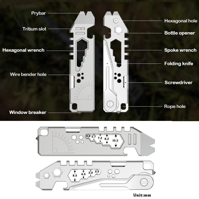 - This 11-in-1 tool is made from durable titanium steel, ensuring strength, corrosion resistance, and a lightweight profile perfect for daily carry and outdoor activities.
