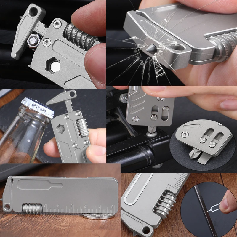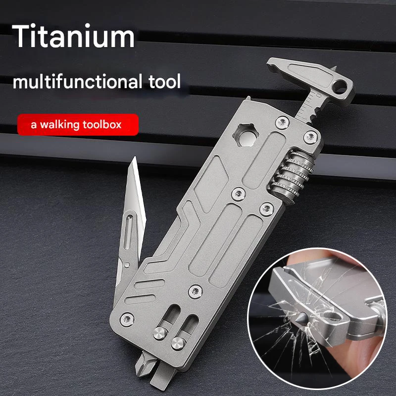 Unlock unmatched practicality with this multi-functional titanium alloy tool set. Whether you're tackling outdoor adventures, emergency situations, or everyday repairs, this high-tech, durable device ensures you're prepared. Its precision-engineered components and lightweight design make it easy to carry while offering maximum strength and reliability. With its sleek aesthetics and comprehensive features, this tool adapts to your needs, providing confidence and efficiency wherever you go. Invest today and experience the convenience of having multiple essential tools seamlessly integrated into one compact device, empowering you to handle any challenge confidently.