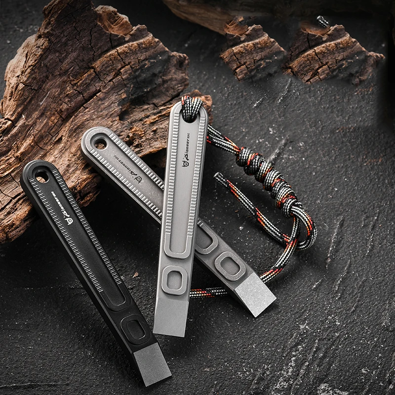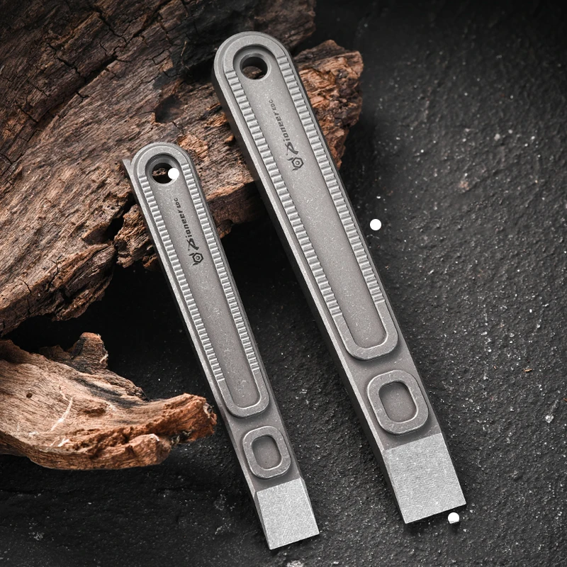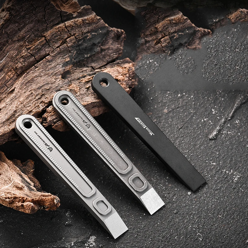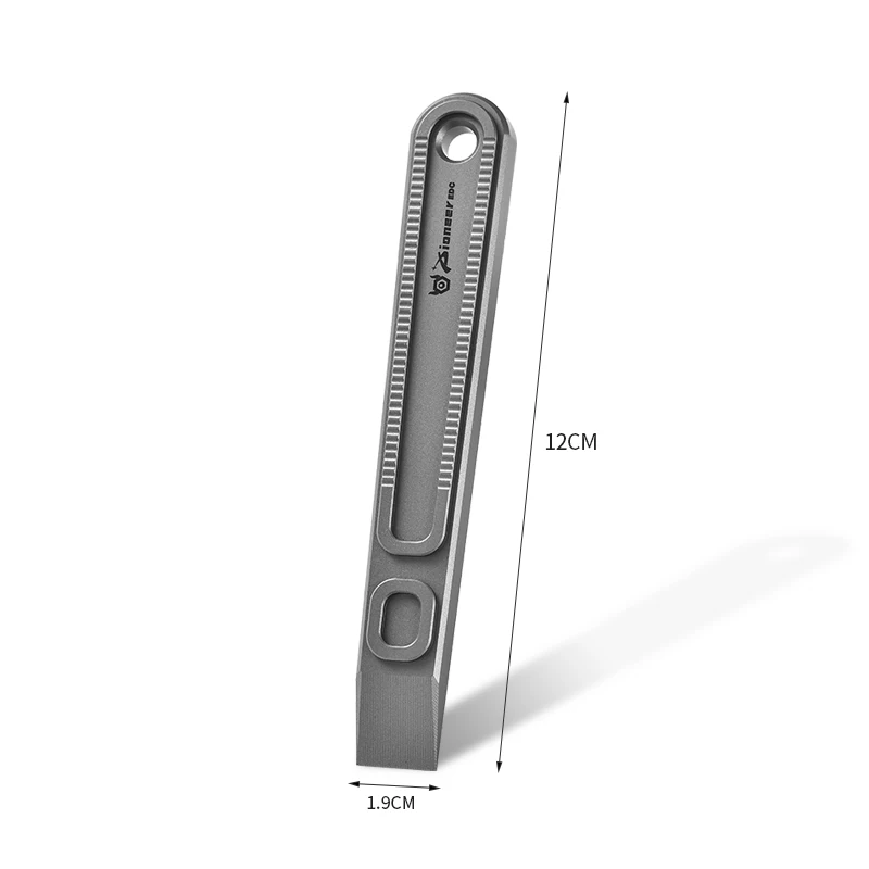 Experience practicality and durability with this lightweight outdoor camping EDC tool, crafted from premium TC4 titanium alloy. Available in two sizes—9.5 cm (15 x 95 x 5.5 mm, weighing 26.5 grams) and 12 cm (19 x 120 x 7 mm, weighing 52.9 grams)—this multifunctional pry bar features a sleek, industrial design with matte finishes in black, sand blast, and stone washing. Its finely detailed ridges and elongated grooves enhance grip and functionality, making it an essential addition to your outdoor gear. Perfect for everyday carry, camping, or tactical use, this high-precision titanium tool is both compact and robust, built to serve your needs reliably wherever adventure takes you.