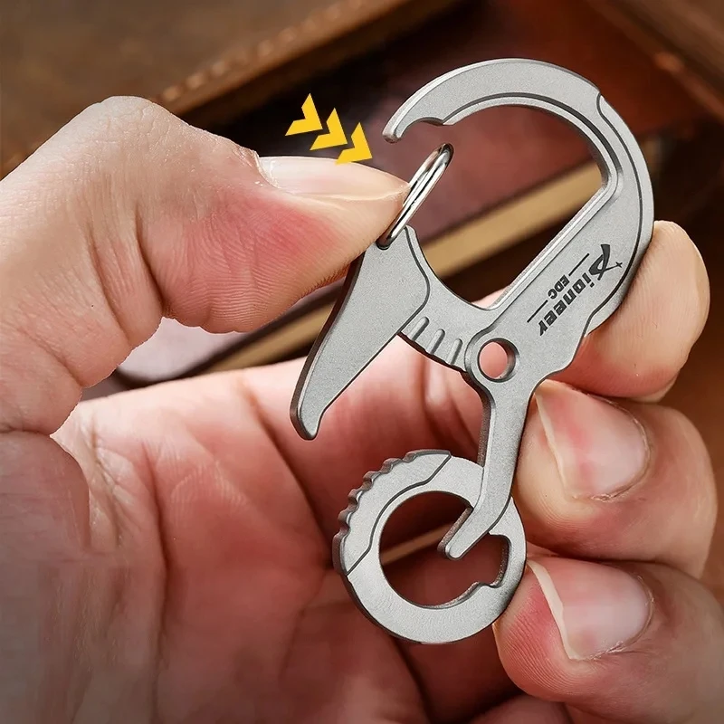 Transform your everyday essentials with this durable, stylish titanium alloy keychain. Its multifunctional design and sleek aesthetic ensure you'll always have a reliable accessory handy, whether for keys, tools, or bottles. Order now to enjoy a rugged, versatile, and customized addition to your outdoor gear or daily carry collection. Elevate your style and efficiency with this high-performance tool designed to meet your needs.