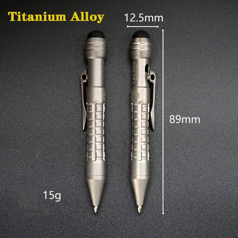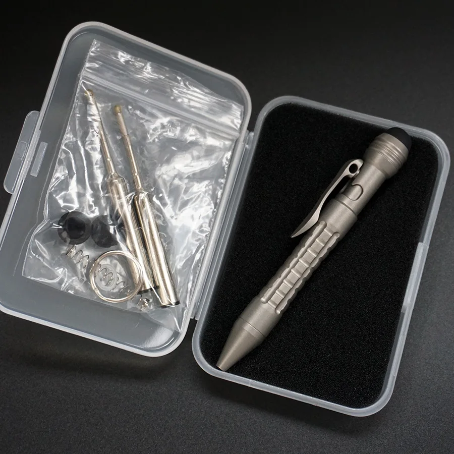 Enhance your everyday carry with this this titanium alloy tactical pen, combining robust construction and multi-use features. Whether for writing, emergency breaking, or touchscreen navigation, it’s designed to keep you prepared and stylish. Its durable titanium steel body ensures it withstands daily wear, while the sleek silver finish maintains a modern look. Perfect for professionals, outdoor enthusiasts, or anyone who appreciates high-quality tools, this pen makes an ideal gift or personal essential. Invest in a discreet, reliable, and versatile accessory that always feels just right in your hand and pocket.
