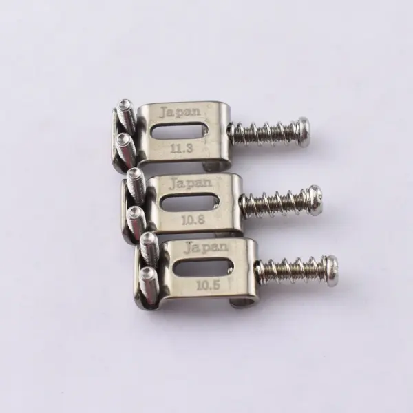 Enhance your guitar's performance with this high-quality Vintage Titanium Alloy Bridge Saddle. Crafted from superior titanium alloy in Japan, this saddle increases sustain and tonal clarity, providing your instrument with premium sound quality. Weighing only 13 grams, it’s lightweight yet sturdy, ensuring years of reliable use. Imagine yourself strumming your electric guitar, the rich tones radiating from this well-crafted piece, offering an unmatched playing experience. Upgrade your guitar effortlessly and feel the difference in your sound as you take your musical skills to the next level with this essential accessory.