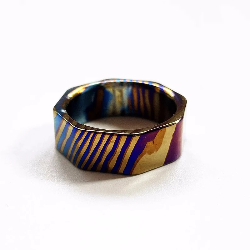- Technical Specifications: Material – tri-color titanium alloy; Surface – meteorite-like textured surface; D(Inner Diameter) – 18mm/20mm/22mm; Width – customizable; Finish – polished and baked for durability.