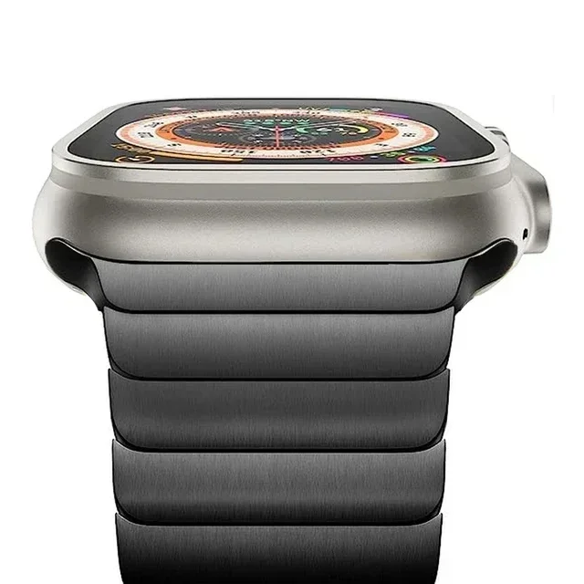 Discover the sleek elegance of this titanium-colored band designed specifically for Apple Watch. Crafted from stainless steel with a polished, matte finish, it boasts a modern yet sophisticated look. Its wide, flat links are smoothly curved, offering both durability and comfort. The seamless integration with the watch case emphasizes a refined, high-end aesthetic, perfect for daily wear or special occasions. Available in multiple vivid colors including black, blue, gold, rose gold, silver, star, and titanium, this band complements various styles and preferences. Its precise craftsmanship and sturdy design ensure long-lasting beauty and reliability, making it an ideal accessory for enhancing your Apple Watch experience. Elevate your style with this premium, fashionable band that combines technical excellence with aesthetic appeal.