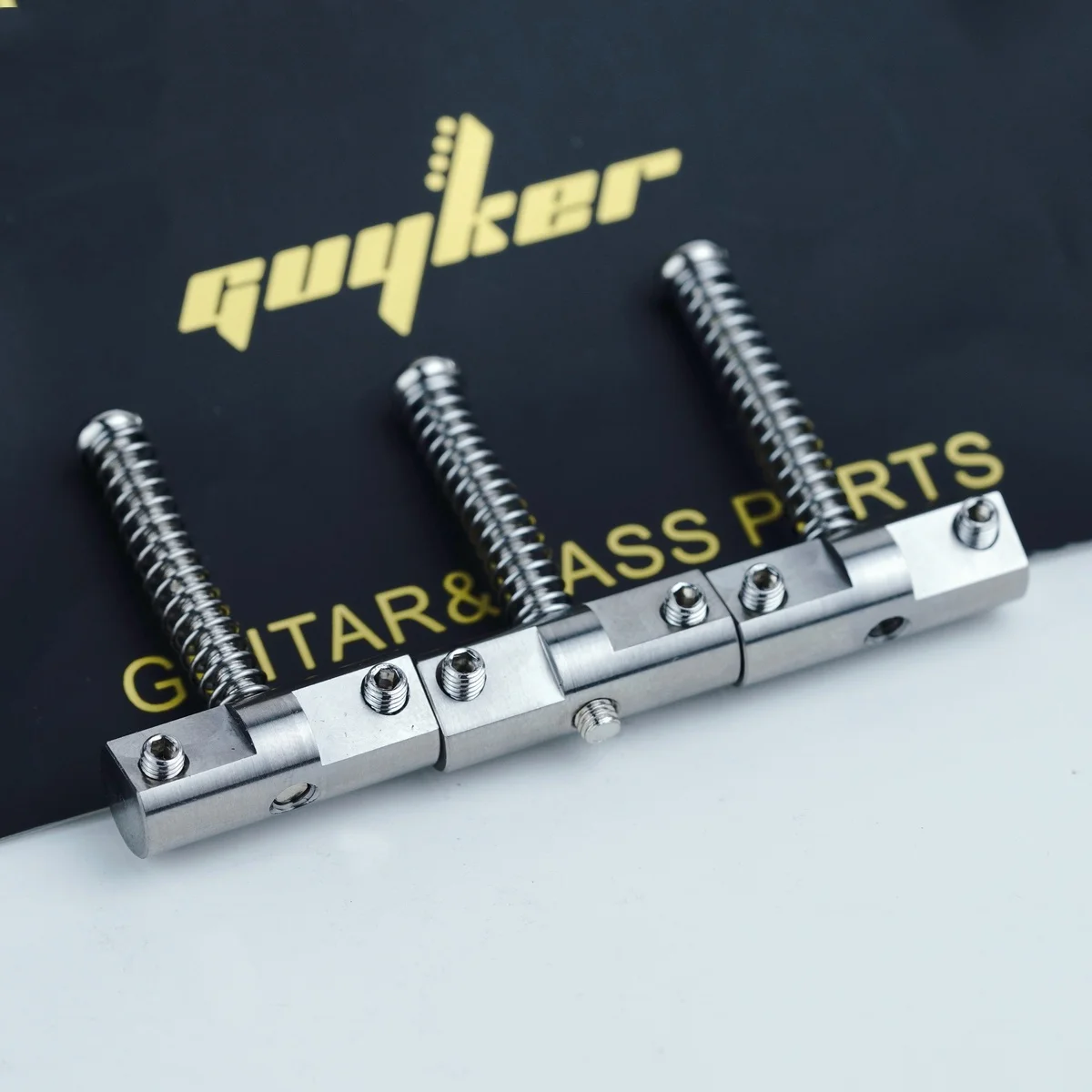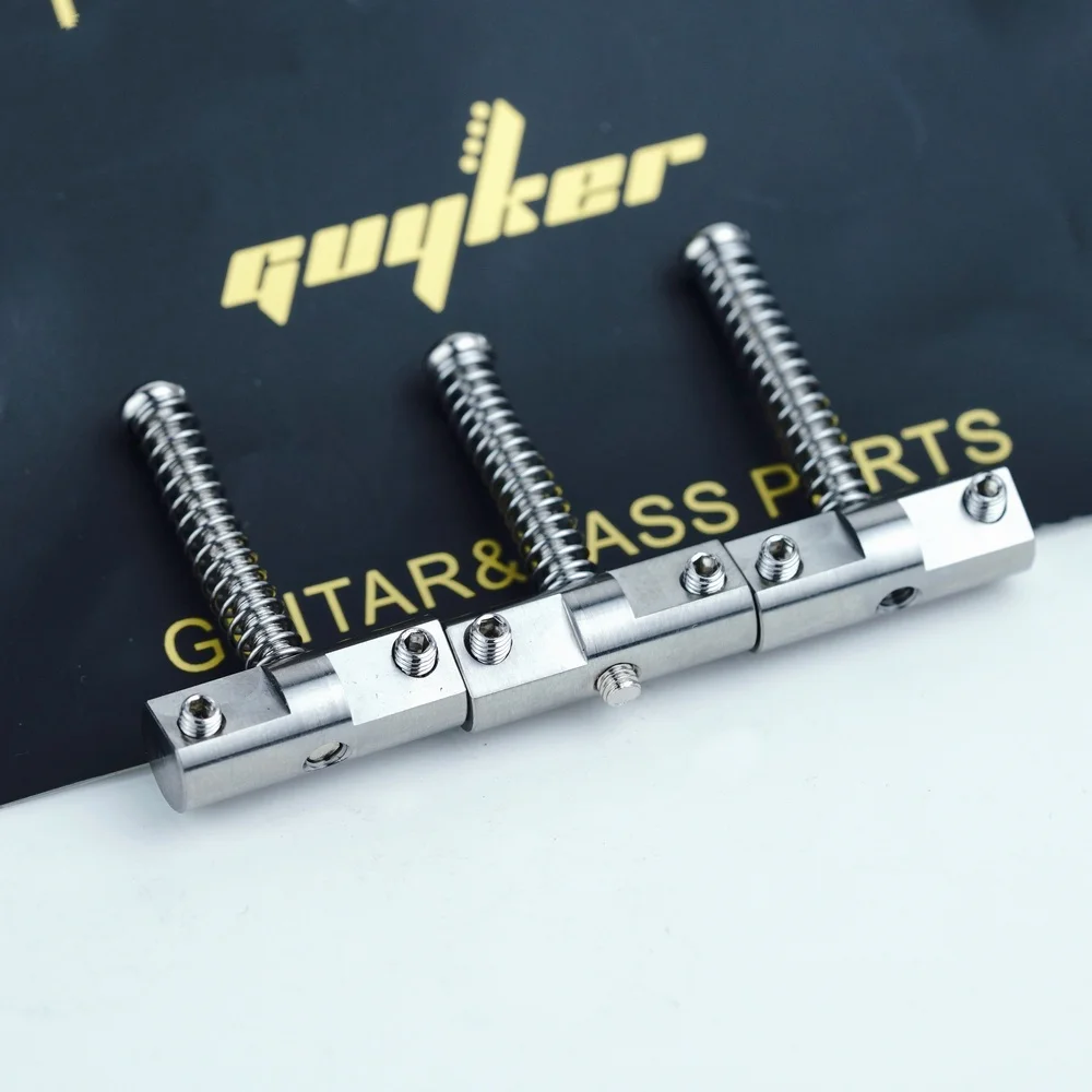 Imagine upgrading your guitar with this premium set of three titanium alloy bridge saddles, designed specifically for vintage Tele TL tremolo models. Crafted for durability and precision, these saddles feature a sleek, polished metallic finish that reflects superior craftsmanship. The cylindrical shape with a rounded top surface offers a modern yet timeless aesthetic, enhancing both appearance and performance. Each saddle's staggered construction ensures optimal string alignment and improved intonation, while the roller design prevents string breakage and boosts sustain. The set’s reversible design provides versatile placement options, making installation straightforward. Whether you’re recording, performing, or practicing, these saddles will help you achieve a richer harmonic overtones and long-lasting tone, transforming your instrument’s sound quality and playability.