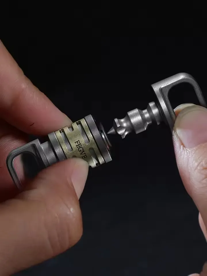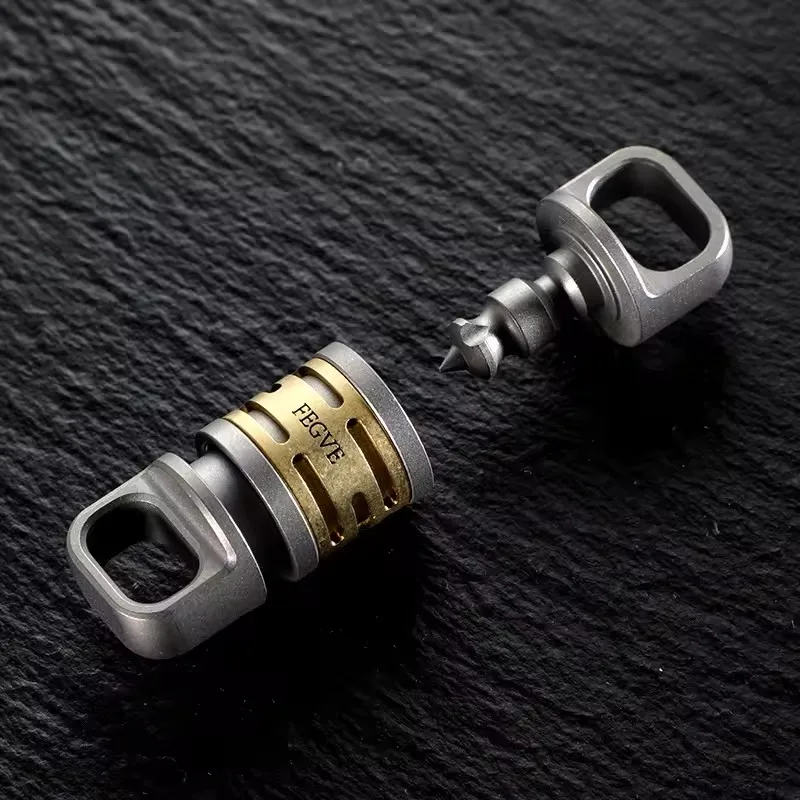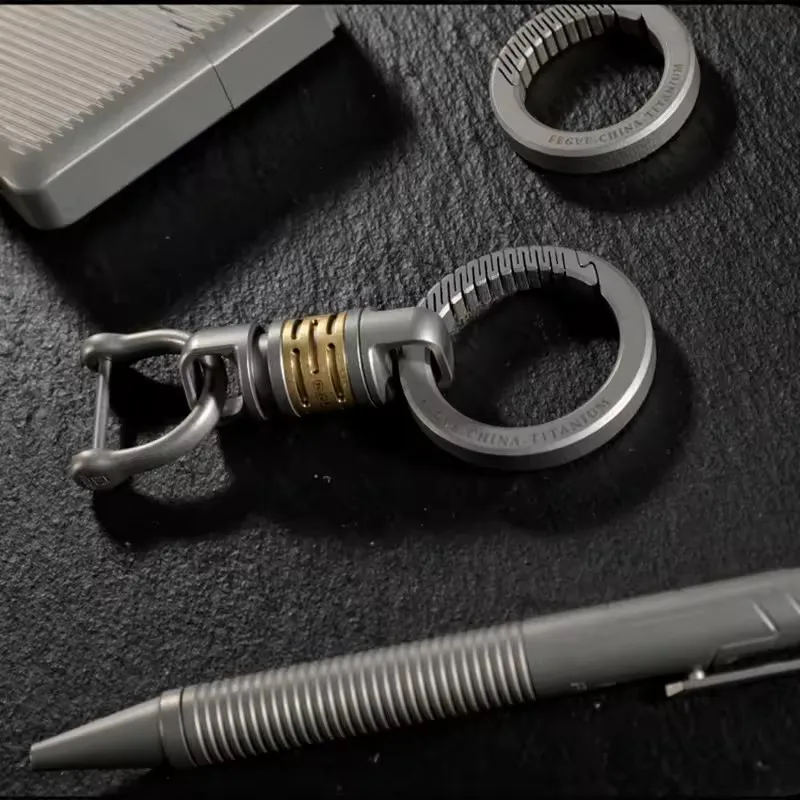Experience the perfect blend of durability and elegance with this premium multifunctional titanium keychain. Crafted from high-quality titanium steel, it combines sleek industrial design with practical features. The robust circular titanium alloy ring, available in matte or polished finishes, provides a smooth and refined appearance. The engraved markings add subtle sophistication, while the gold-colored cylindrical disassembly mechanism offers a modern, high-tech aesthetic. This component, with its precise horizontal cut-outs, allows quick disassembly and customization, making it ideal for DIY enthusiasts. Its sturdy construction ensures long-lasting use, and the versatile design is suitable for everyday carrying or as a collectible. Elevate your accessories with this high-quality, customizable titanium keyring—your reliable, stylish companion for daily life.