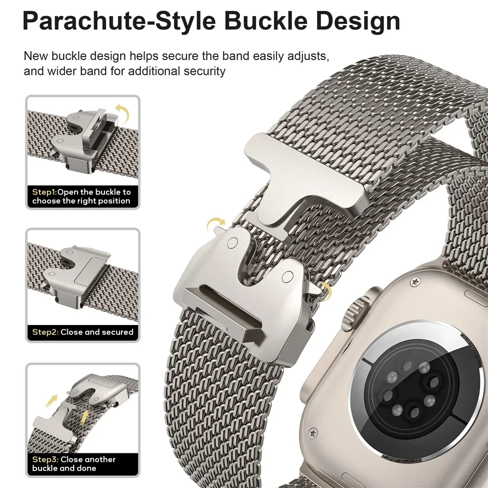 Transform your Apple Watch experience with this stylish titanium Milanese loop strap, crafted from high-quality stainless steel. Its finely woven mesh design offers a sleek, contemporary look that is both breathable and flexible, ensuring comfort for all-day wear. Available in three sophisticated colors—natural titanium, silver, and black—this strap complements any style, from casual to formal. Its universal compatibility with Apple Watch Series 3 through Ultra 2, covering all common sizes from 38mm to 49mm, guarantees a perfect fit. The durable, lightweight construction paired with a secure deployment clasp makes it an ideal accessory for those who value both style and functionality. Elevate your watch's appearance effortlessly and enjoy a seamless blend of elegance and practicality every day.