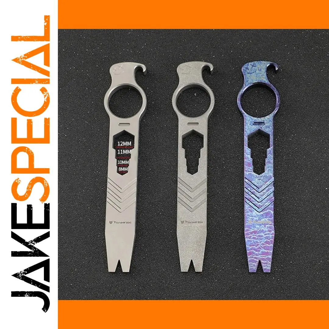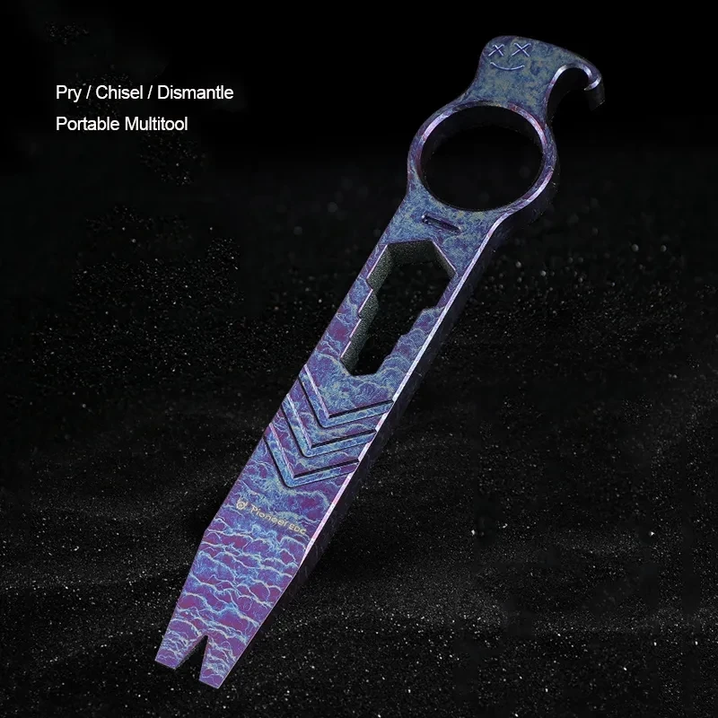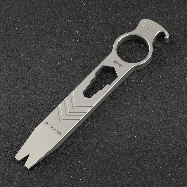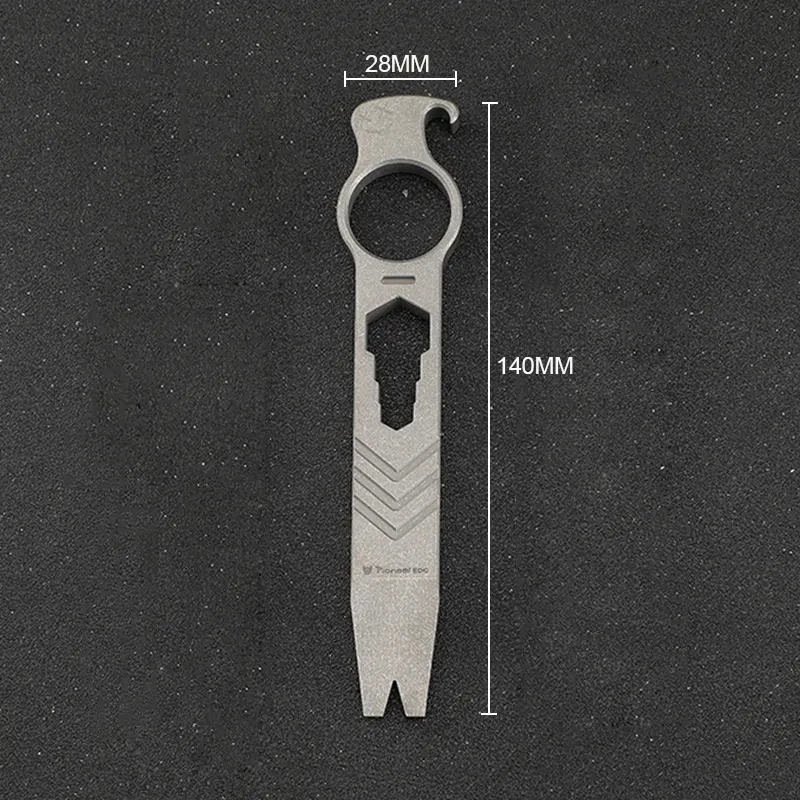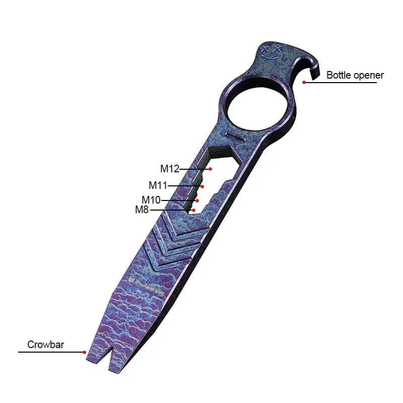 Experience ultimate versatility with this compact titanium alloy multitool crowbar, measuring 140mm long, 28mm wide, and 8mm thick. It’s available in sleek light gray, dark gray, or vibrant blue finishes, featuring CNC-machined, burr-free edges and a polished, safety-focused design. This 6-in-1 tool functions as a wrench compatible with M8, M10, M11, and M12 screws, a bottle opener, and a crowbar, making it ideal for outdoor adventures, camping, or everyday tasks. Its rounded front end with a 15° slope ensures effortless operation and safety, delivering both durability and modern aesthetics in a lightweight, portable package.
