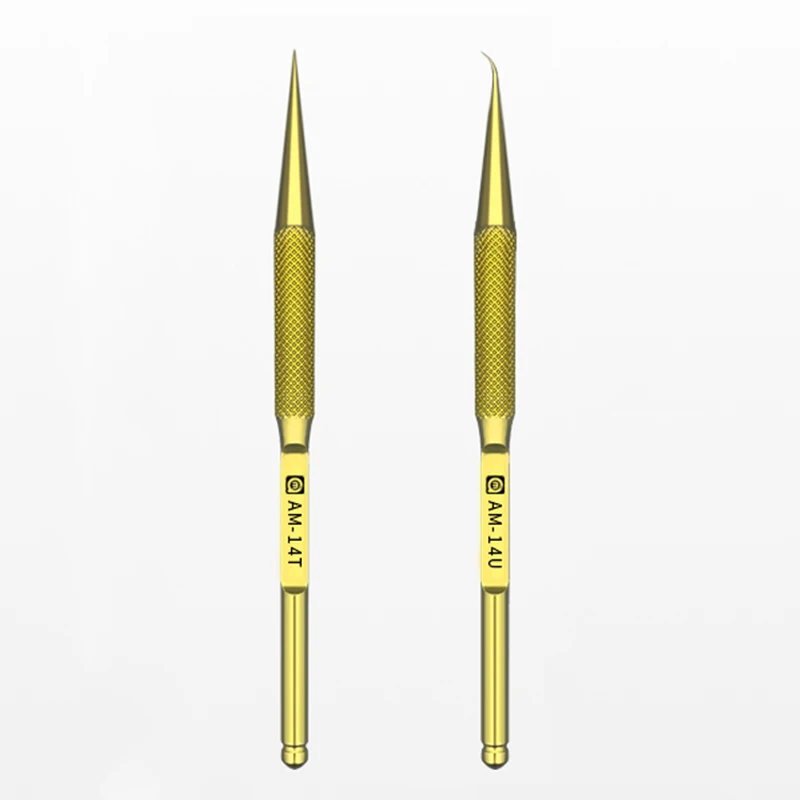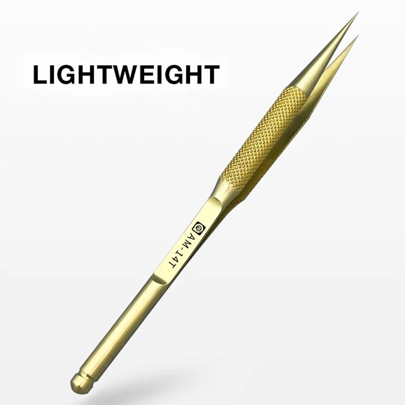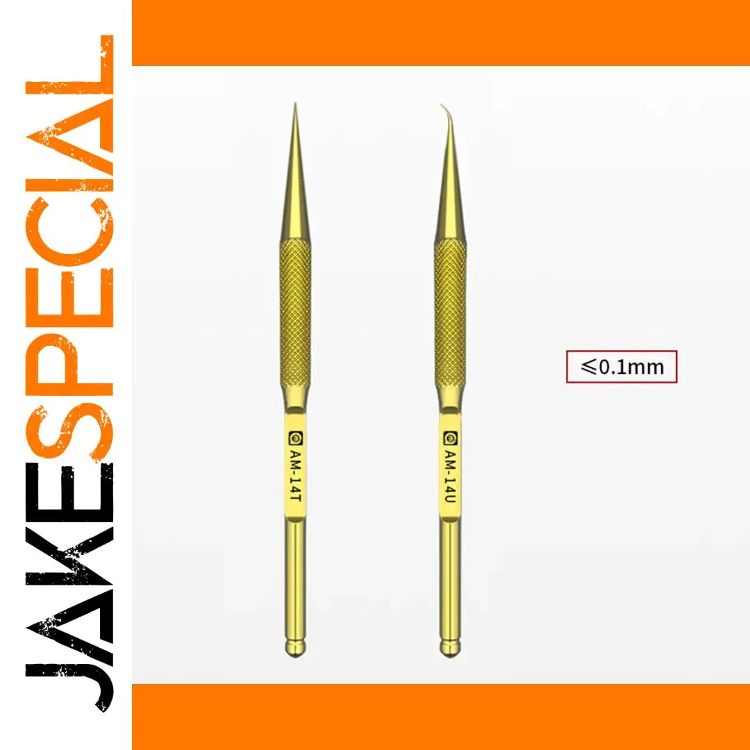 Experience exceptional control and durability with this pair of precision tweezers from AMAOE, crafted from high-quality titanium alloy. Featuring a sleek, glossy gold finish, these tweezers are designed specifically for delicate electronic repairs. The combination of lightweight construction and ergonomic handles ensures comfortable use for extended periods, reducing fatigue. With their ultra-fine 0.1mm tips, these tools excel at gripping tiny wires, connectors, and components with high accuracy. Offering both straight and curved styles, they cater to various work angles, enhancing your versatility. Their non-magnetic, high-hardness design guarantees precision in handling sensitive electronic parts without interference, making them a must-have in your repair toolkit.