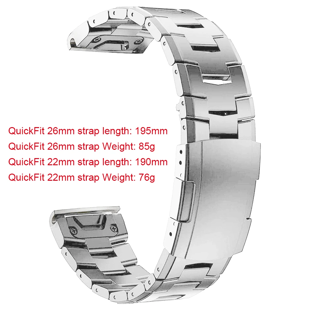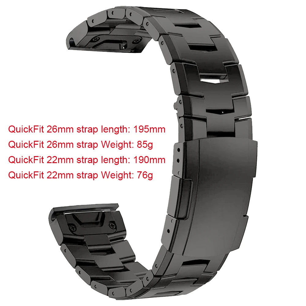 Transform your Garmin watch experience with this Titanium Watch Band QuickFit 26mm, perfectly designed for models like the Garmin Fenix 7X, 6X Pro, and Epix Gen 2. Crafted from durable titanium alloy and stainless steel, this band combines strength with elegance, ensuring it complements your active lifestyle. Feel the superior comfort as you effortlessly adjust the folding metal clasp for a secure fit. Visualize your watch enhanced by this exquisite accessory, making a bold statement about your taste and midnfulness of quality. Elevate your timepiece for any occasion, whether it's a workout session or a formal event.