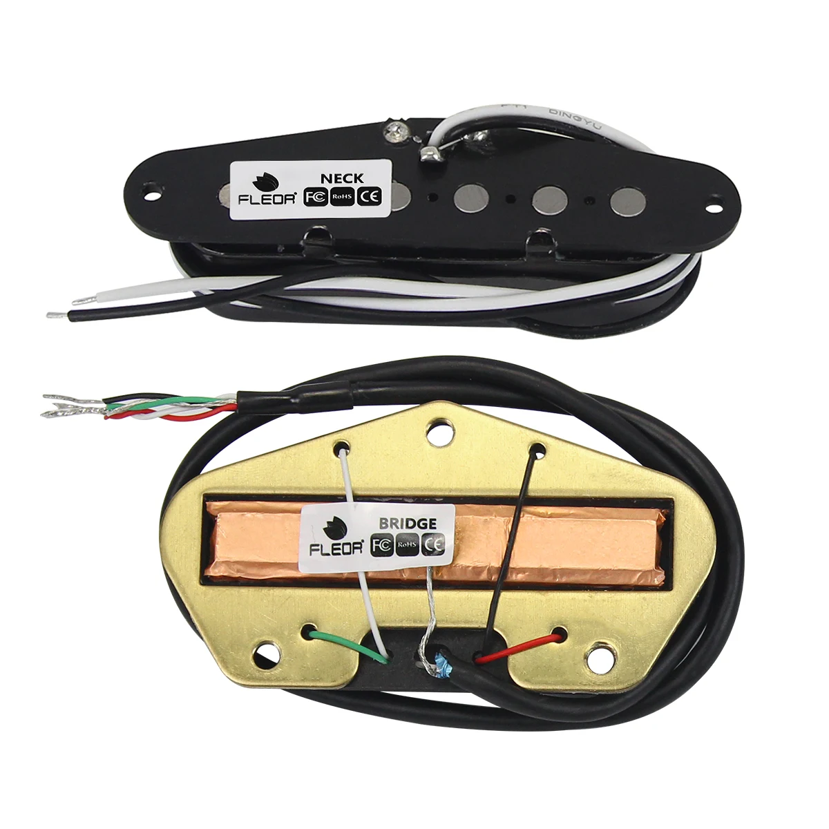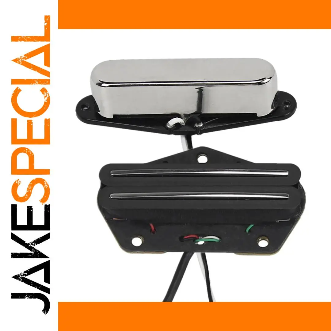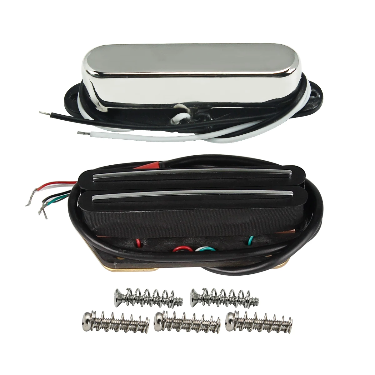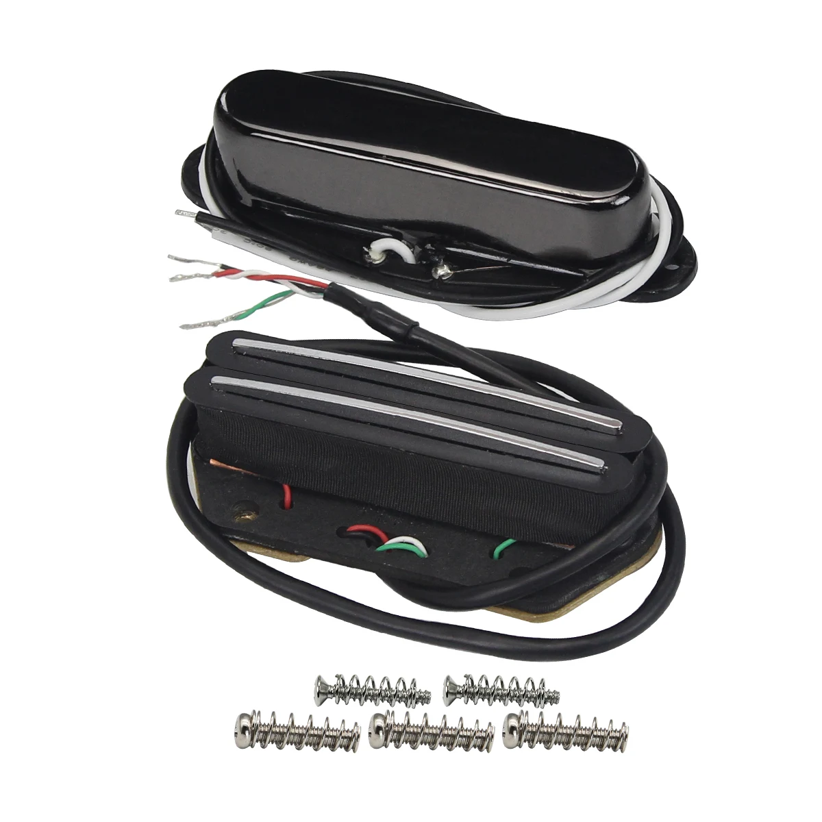 This set features a sleek Alnico 5 neck pickup with a resistance of 7-8kΩ and a modern, polished look, paired with a robust dual rails humbucker bridge pickup with a resistance of 12-13kΩ, featuring a black fiber bobbin and brass base plate for enhanced tone. Fully wax potted for noise reduction, the humbucker includes four wires for coil splitting—white and red for series split, green and bare for ground, black as hot signal—offering versatile sound options. Designed for TL style guitars, these pickups come with mounting screws and springs, available in Black, Gold, and Chrome finishes, elevating your guitar’s performance and aesthetic.