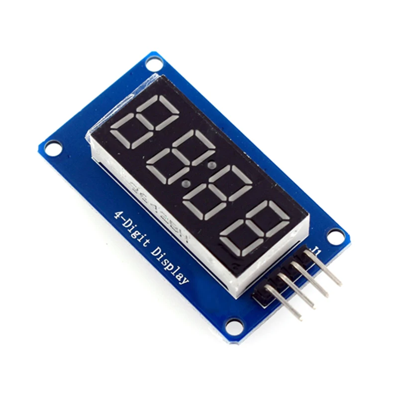 The TM1637 LED Display Module features a compact design with a 4-digit common anode configuration and a vivid 0.36-inch red digital tube. This module is equipped with 8-level grayscale adjustability and operates with a control interface consisting of 4 pins: GND (ground), VCC (power supply), DIO (data input/output), and CLK (clock signal), compatible with 5V or 3.3V power supply. It includes 4 M2 screw positioning holes with a 2.2mm diameter for secure installation. Key functionalities encompass displaying time with a clock feature, running a stopwatch, and flowing characters (0-9, A-F) from right to left for dynamic visuals.