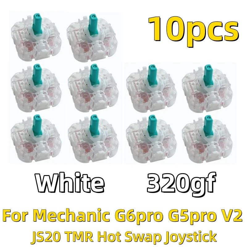Experience enhanced control and customization with this set of this TMR JS20 hot swap joysticks, designed for optimal gaming performance. These joysticks are crafted with a minimalist and modern aesthetic, available in vibrant black, blue, orange, and white options that seamlessly complement your gaming setup. Each joystick features a durable, transparent or opaque plastic base that showcases the internal mechanics, emphasizing quality and craftsmanship. The elongated cylindrical grip offers a comfortable and precise handling experience, allowing you to make quick, accurate movements during gameplay. The design ensures compatibility with G6Pro and G5Pro V2 controllers, giving you a reliable and versatile upgrade. Invest in this upgraded gear for a noticeable difference in your gaming precision and comfort.