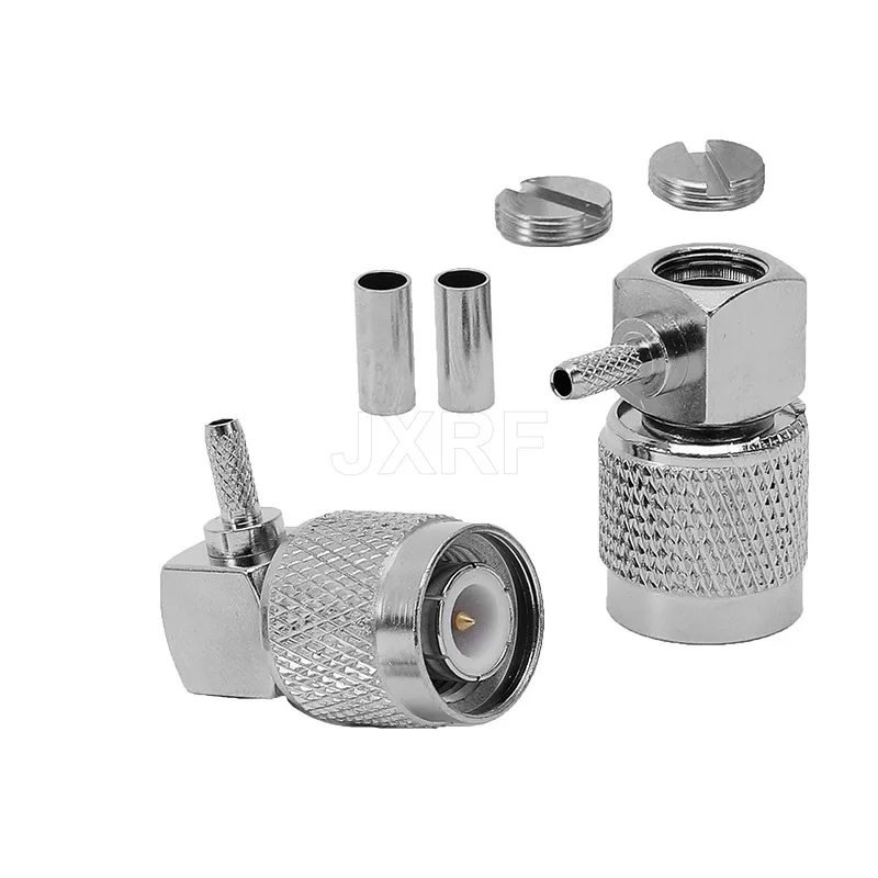 Experience a high-quality, durable RF coaxial connection with this TNC male elbow connector, crafted from copper for reliable performance. Compatible with RG316 and RG174 cables, it features a TNC-JW-1.5 configuration with a 1.5-inch terminal block, ideal for precise and secure RF applications. Its cylindrical design with knurled surfaces ensures an ergonomic grip for easy tightening, while the threaded coupling nut provides a secure connection. The polished, silver-colored finish boasts a sleek, metallic look that combines industrial robustness with professional elegance, making it an essential component for high-performance RF setups, ensuring durability and long-lasting precision in your projects.