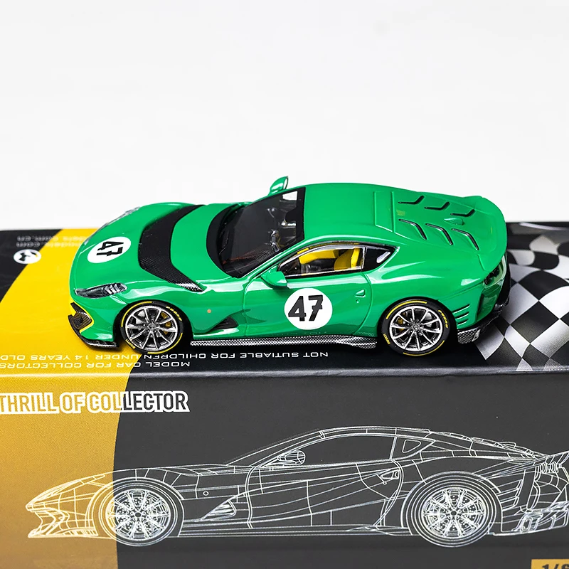 Experience the thrill of racing right in your home with this exquisite TOC 1:64 scale supercar model collection. The set features two high-quality diecast alloy car models: a stunning blue car with glossy accents and bold yellow racing stripes, and a mesmerizing green counterpart with aggressive curves and a sleek design. Each model boasts intricate detailing, including realistic lights and fine wheels, ensuring authenticity and a collector’s appeal. The unique checkered display card adds to the racing theme, making these pieces perfect for display. Indulge your passion for fine collectibles and immerse yourself in the excitement of the racetrack.