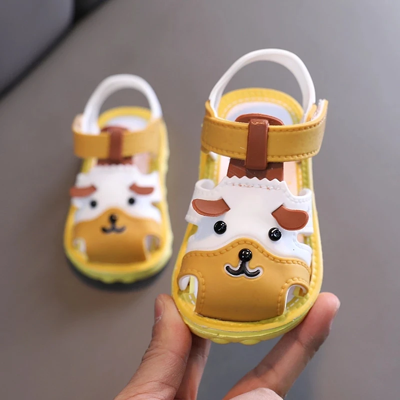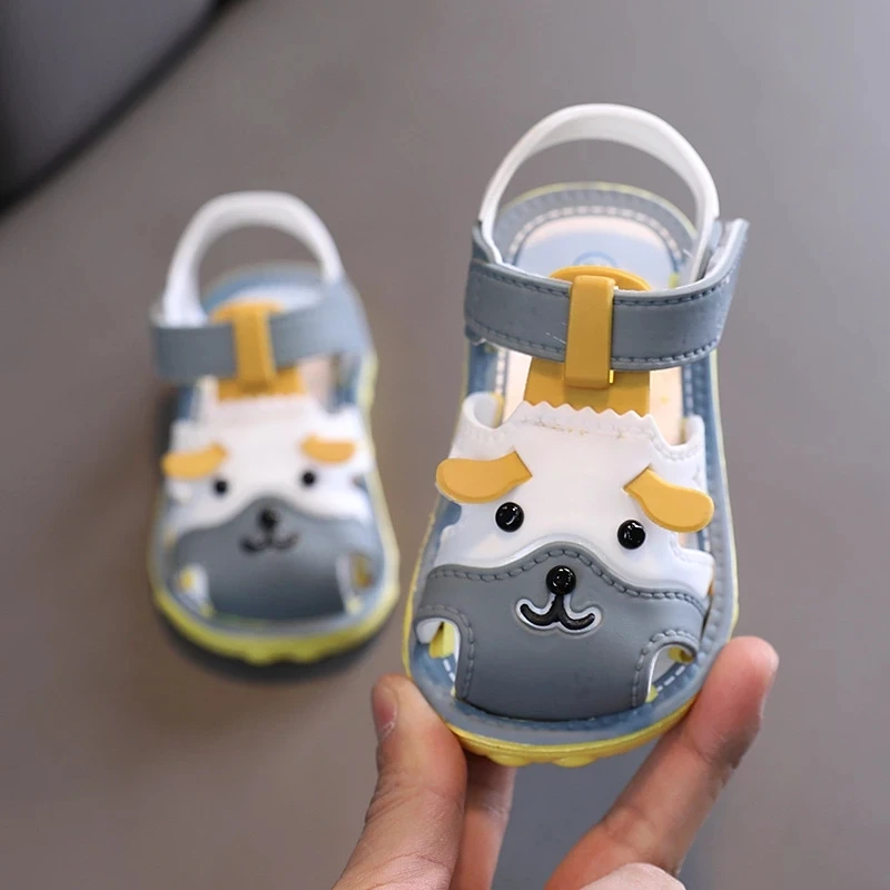These adorable children’s summer sandals are perfect for your little ones aged 13-36 months, featuring a playful gray design with vibrant yellow accents that resemble a friendly cartoon animal face. The sandals are equipped with a hook-and-loop closure for easy wear, while the soft PU upper and lining ensure a comfortable fit. With a flat heel for stability and rubber outsole for non-slip traction, these breathable sport sandals are ideal for warm weather outings. Available in sizes 10.5cm to 13.5cm and also offered in Blue, Pink, and Yellow, these sandals combine fun and functionality for your toddler’s summer adventures.