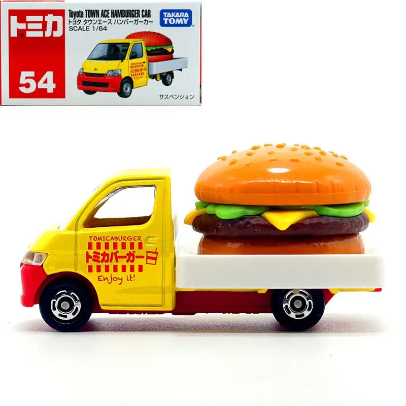 Imagine adding a vibrant, playful touch to your collection with this diecast alloy transport truck model No.58, available in colors NO.54, NO.55, and NO.58. Featuring a food-themed design inspired by fast food favorites, this durable metal toy showcases a French fry and hamburger delivery vehicle with detailed graphics and realistic miniature food elements. No batteries or electricity are needed, making it an ideal decorative piece or gift for enthusiasts aged 14 and above. With intricate craftsmanship and robust construction, this model captures whimsy and realism, perfect for showcasing or gifting to those who appreciate detailed, food-inspired collectible cars.