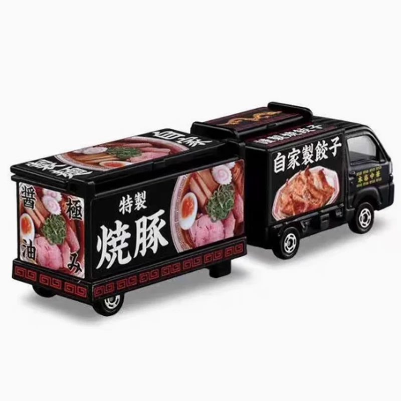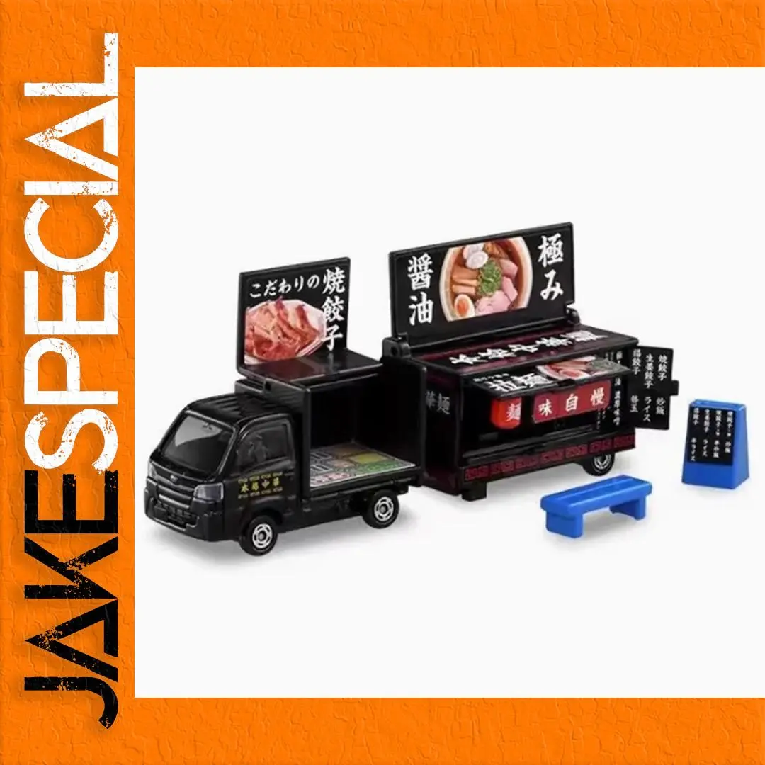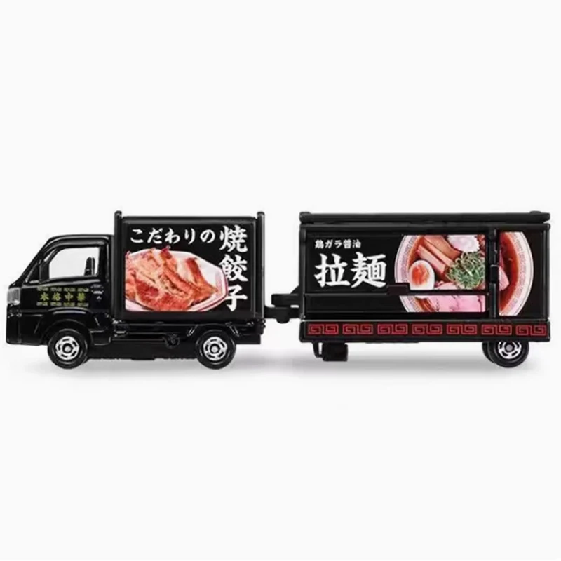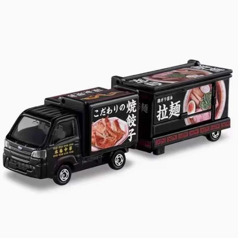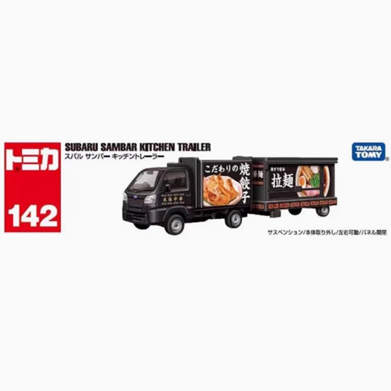 Showcasing the exquisite TOMY 1/64 TOMICA No.142 Subaru Van, this diecast model is a true masterpiece for collectors and enthusiasts alike. Its sleek black finish glistens under light, exuding elegance while colorful food graphics on the back add a delightful vibrancy. Complete with a service area and charming blue accessories, including a bench and a signboard, this model beautifully encapsulates the food truck charm. It is perfectly sized for display and is an ideal gift choice for aficionados. Imagine showcasing it proudly on your shelf or using it as an eye-catching conversation starter in your collection.