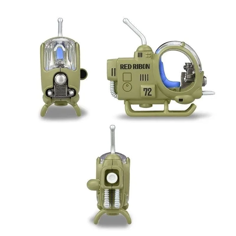 The TOMY Tomica Dragon Ball Kame Sennin Red Ribbon Army Plane model showcases a charming design inspired by the beloved anime series. Featuring a muted green hue, it captures the essence of the Dragon Ball universe. The streamlined shape and a clear cockpit detail provide a glimpse of the blue interior, heightening its playful nature. Adorned with “RED RIBBON” printed on the side, this compact vehicle is not just a toy, but a collector's item perfect for display. The small front propeller highlights its classic aircraft style, while its non-electric design ensures hassle-free enjoyment for fans aged 14 and beyond.