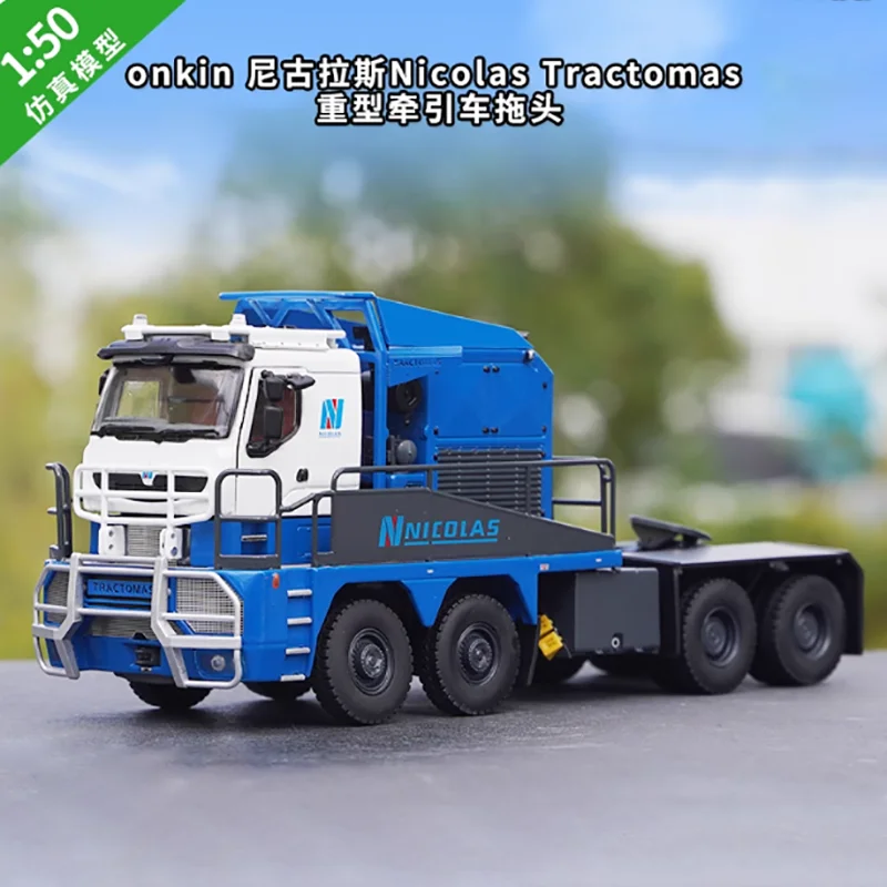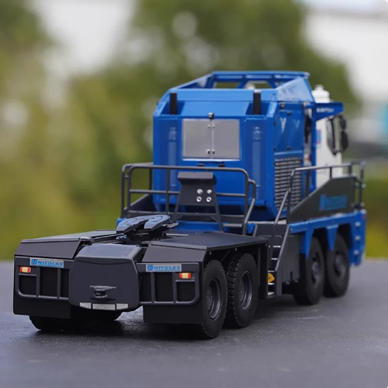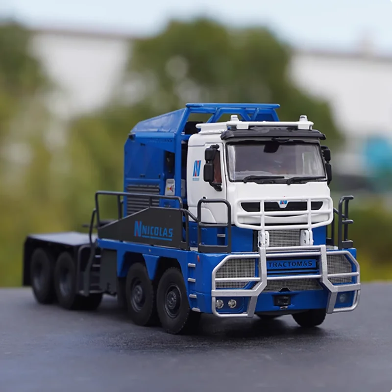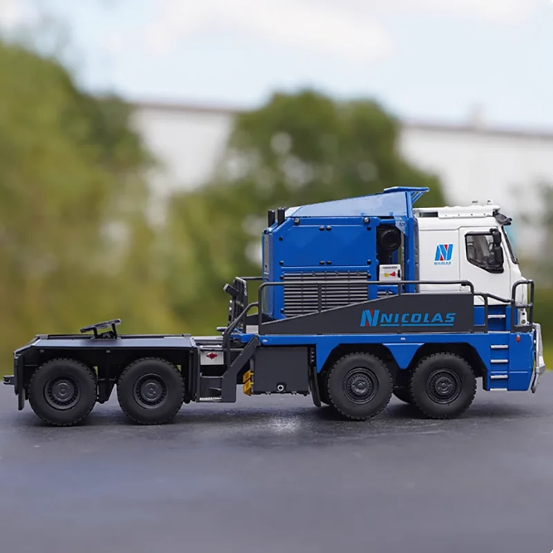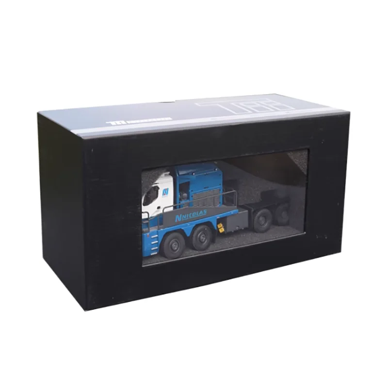 The Tonkin 1:50 Tractomas tractor model is a stunning collectible designed for adult enthusiasts, crafted from a combination of alloy and plastic materials. It features a rich deep blue color with glossy finishes, complemented by grey and white accents. The white cab showcases a stylized “N” logo, while intricate mechanical details and vent grills enhance its realistic look. With a robust chassis supported by four large wheels with detailed tread patterns, this static ornament highlights careful craftsmanship and fine detailing. Perfect as a decorative piece or gift, it’s a striking addition to any collection.