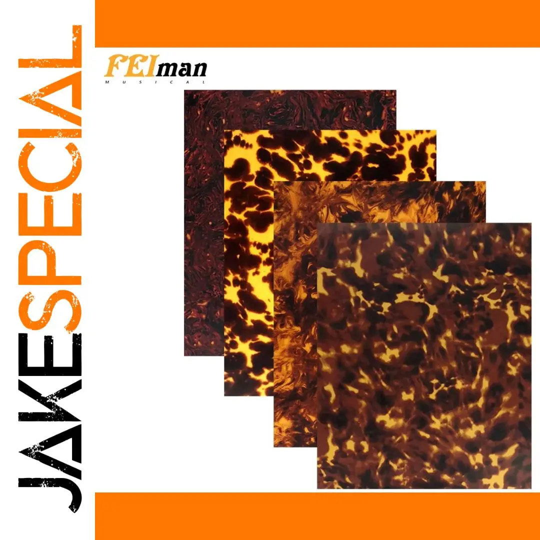 Enhance your acoustic guitar's look effortlessly with this high-quality self-adhesive tortoise scratch plate. Designed from durable printed PVC celluloid, it features stunning marbled, spotted, and swirling patterns that mimic classic tortoise shell aesthetics. Each sheet offers a glossy finish that adds a sophisticated touch to your instrument, with protective films on the surface ensuring a pristine look during application. Measuring 29cm by 19cm with a slim 0.6mm thickness, this scratch plate is lightweight and easy to cut for a perfect fit. Whether you want to replace your existing pickguard or customize your guitar’s appearance, this versatile product makes installation straightforward with its 3M clear adhesive backing. Brighten your instrument’s style with ease and elegance.