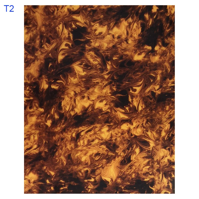 Imagine upgrading your guitar with these stunning tortoiseshell-inspired pickguard sheets. Each of the five sheets measures 29 cm by 19 cm and is just 0.6 mm thick, crafted from high-quality printed celluloid PVC material. Their warm, intricate patterns mimic natural tortoiseshell, featuring swirling shapes in deep browns, amber hues, luminous yellows, and hints of black and red, giving your acoustic guitar a luxurious, vintage look. With a glossy finish, these sheets add a sophisticated shine and depth. The self-adhesive backing simplifies installation—just peel and stick. Perfect for customizing or replacing scratched pickguards, these sheets invite your creative touch, allowing you to tailor your guitar’s aesthetics to your style.