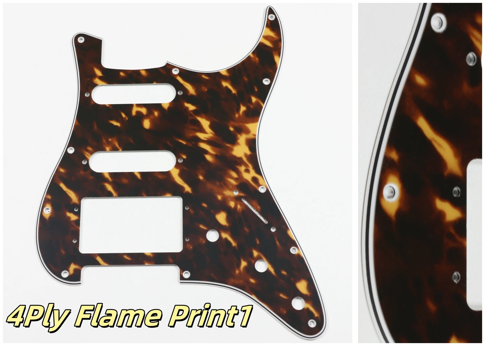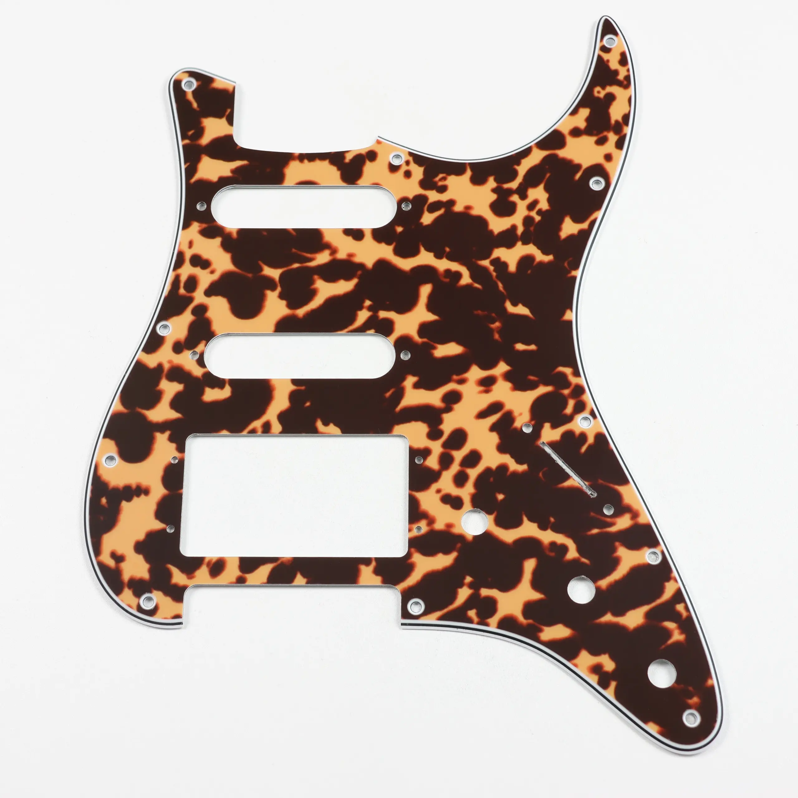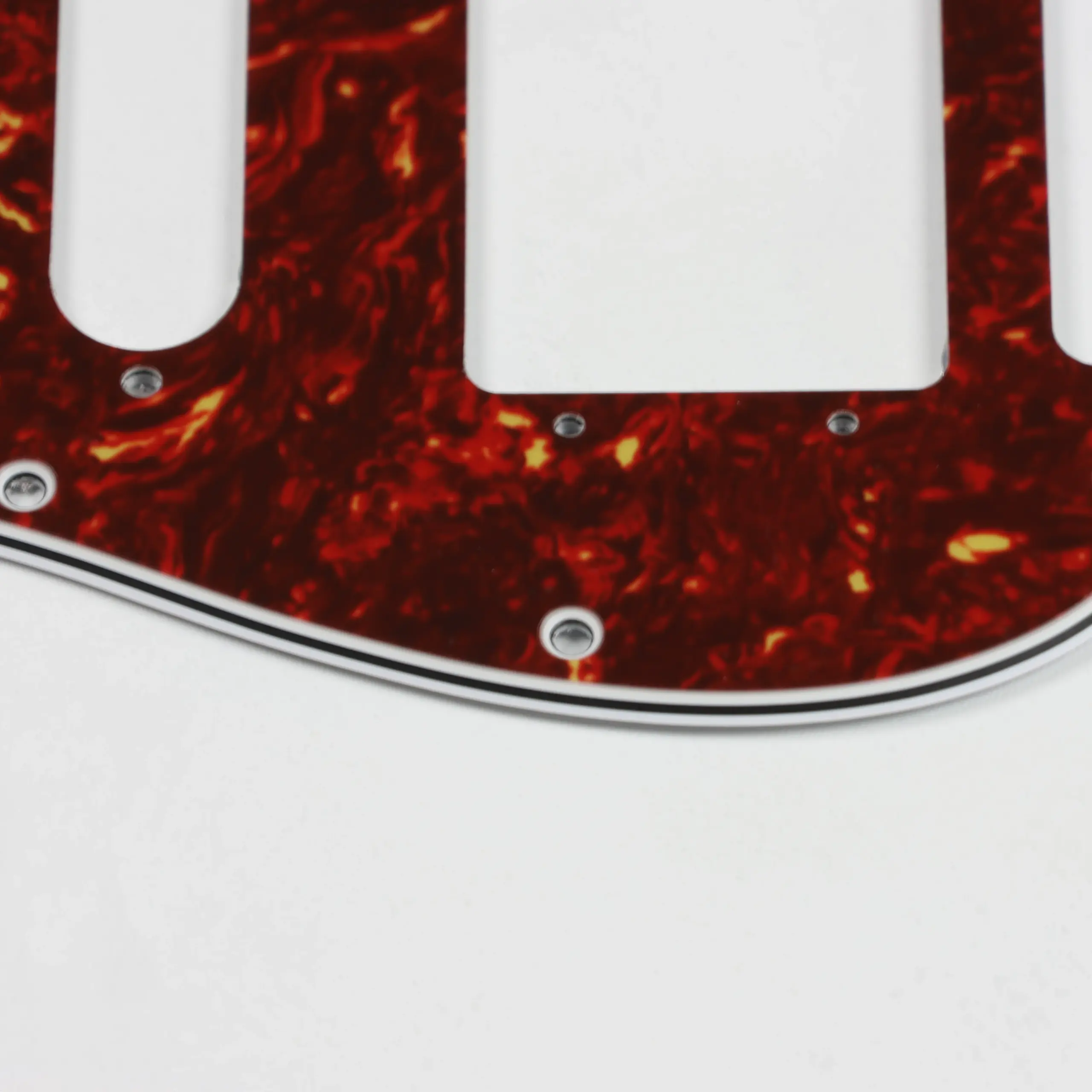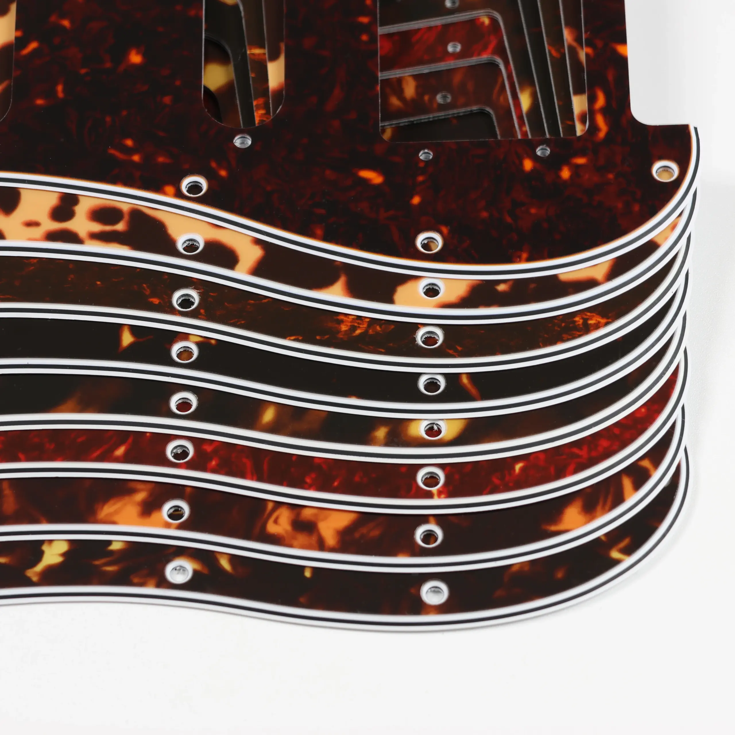 This guitar pickguard is expertly designed for USA Fender Stratocaster models, featuring an 11-screw configuration. The pickguard showcases a stunning tortoiseshell pattern that blends warm shades of brown, orange, and black, evoking a classic and vintage appeal. Crafted from high-quality PVC and composite materials, it boasts durability and an anti-scratch feature, ensuring long-lasting protection for your guitar. With a glossy finish that adds depth to its colors, the product rounds off its aesthetic with well-defined edges and precise cutouts for easy installation. A real aluminum foil shield further diminishes noise interference, making this pickguard both an aesthetic and functional upgrade for any guitar enthusiast.