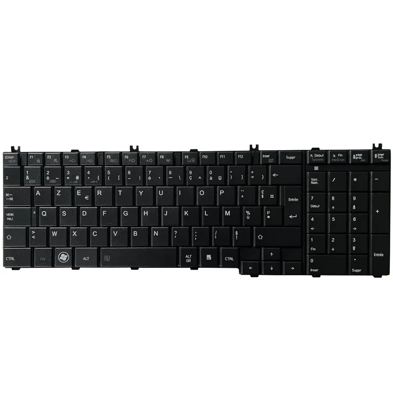 Upgrade your Toshiba Satellite laptop with this new replacement keyboard compatible with models C650, C650D, C655, C655D, C660, C660D, C670, L650, L655, and L655D. Available in black or white, it features multilingual support for Russian, US, Spanish, French, and Latin characters, with a layout conforming to French standards. Durable and sleek, the keyboard has a compact, flat design with rectangular keys and white printed symbols for clear readability. It ships quickly within 24 hours, offering a 180-day warranty on the keyboard and fan. Elevate your laptop’s functionality and style with this high-quality, compatible replacement part.