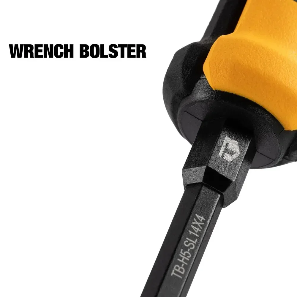 Experience the ultimate precision and comfort with this TOUGHBUILT TB-H5S8-A screwdriver set, crafted for those who demand reliability in every task. This 8-piece collection features sleek, modern tools with ergonomic tri-panel rubber handles in striking yellow and black accents, offering excellent grip and control. The straight, black chrome-plated steel shafts resist rust, ensuring longevity even in tough conditions. The magnetic, nickel-plated tips enhance screw retention, simplifying your work and reducing accidental slips. Whether you're tackling home repairs or professional projects, this versatile set includes a variety of sizes and types: Phillips, slotted, cabinet, and square drivers, perfectly suited to a wide range of applications. Elevate your toolkit with these high-quality, durable screwdrivers designed for precision and efficiency.