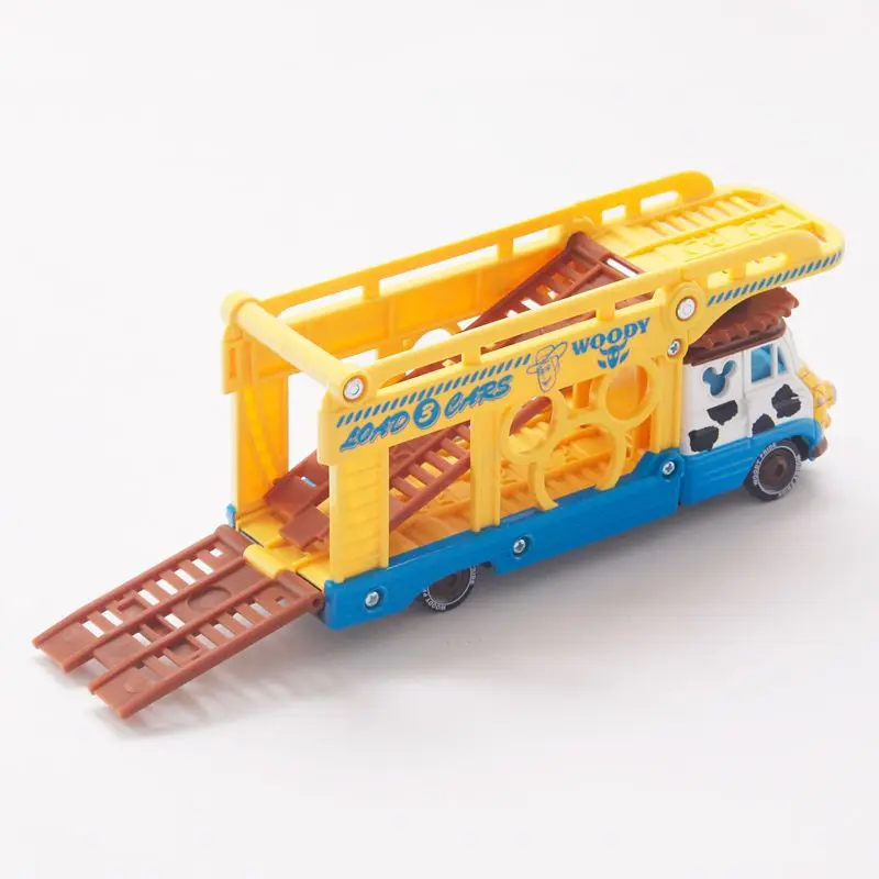 Step into a world of playful imagination with this vibrant Toy Story transport vehicle. Crafted from durable metal, this diecast model captures the whimsical spirit of the beloved franchise. Its lively yellow main body is adorned with bold accents, large circular cut-outs, and caution stripe details that evoke the fun, cartoonish style of Toy Story. The front cab features a charming white and blue design, enhancing its cheerful appeal. On top, a vivid green car with purple accents and a transparent roof adds extra play value, while the brown cargo box brings a sense of adventure. Perfect for display or imaginative play, this model invites you to bring the magic of Toy Story into your collection.