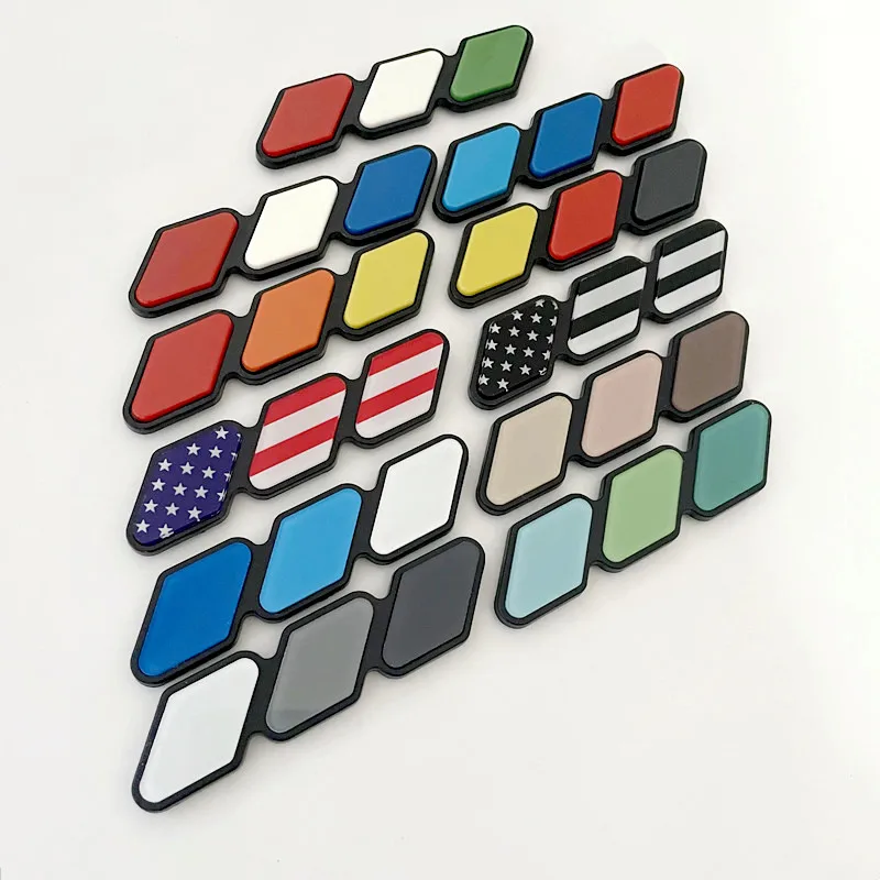 Enhance your Toyota vehicle with this stylish ABS emblem badge, measuring approximately 10 cm in length and 2.5 cm in width. Compatible with models like Tacoma, Tundra, 4Runner, TRD, Highlander, Rav4, and CHR, this single-piece accessory features a vibrant, three-color front grille logo available in ten color options labeled from A to K. Its modern, polished design with a glossy finish and thin black borders makes it perfect for customizing air inlet strips or front grilles. Crafted from high-quality materials with no high-concern chemicals involved, this durable emblem provides a sleek, personalized look to elevate your vehicle’s style.