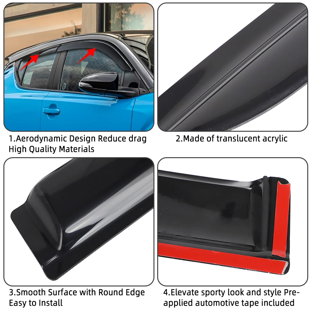 - Set includes four durable acrylic visors, designed to fit Toyota C-HR models years 2017-2023 perfectly.