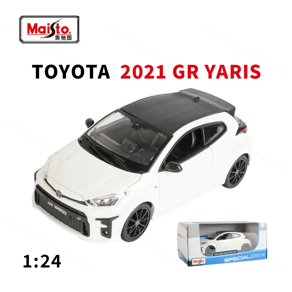 Experience the thrill of the sport with this highly detailed 1:24 scale die-cast model of the Toyota GR Yaris by Maisto. Measuring approximately 16.7 cm in length, 8.6 cm in width, and 6.2 cm in height, this model features a sturdy metal body with black accents, including a textured black roof, front grille, bumper, and side mirrors. The sleek white or striking red finish highlights its sporty design, complemented by black multi-spoke wheels with free-rotating low-profile tires. Functional doors add realism, making it a perfect collectible for enthusiasts aged 14 and above who appreciate craftsmanship and detailed miniature vehicles.