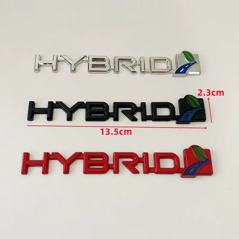 Imagine elevating your Toyota's appearance with this sleek and modern decorative badge. Crafted with attention to detail, it measures approximately 13.5 centimeters long and 2.3 centimeters wide, making it a perfect addition to your car's exterior. Available in three eye-catching finishes—chrome silver, matte black, and bright red—this emblem instantly enhances your vehicle's sophisticated look. The raised three-dimensional lettering and precise graphic elements provide depth and texture, offering a refined visual contrast. The emblem’s PVC backing ensures a firm adhesive hold, allowing for a seamless, durable attachment on fenders or trunks. It’s an ideal choice for those who want to customize their hybrid Toyota, making your vehicle stand out with a bold yet classy statement of eco-friendly performance.
