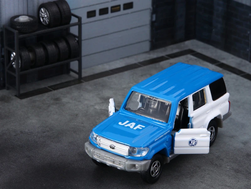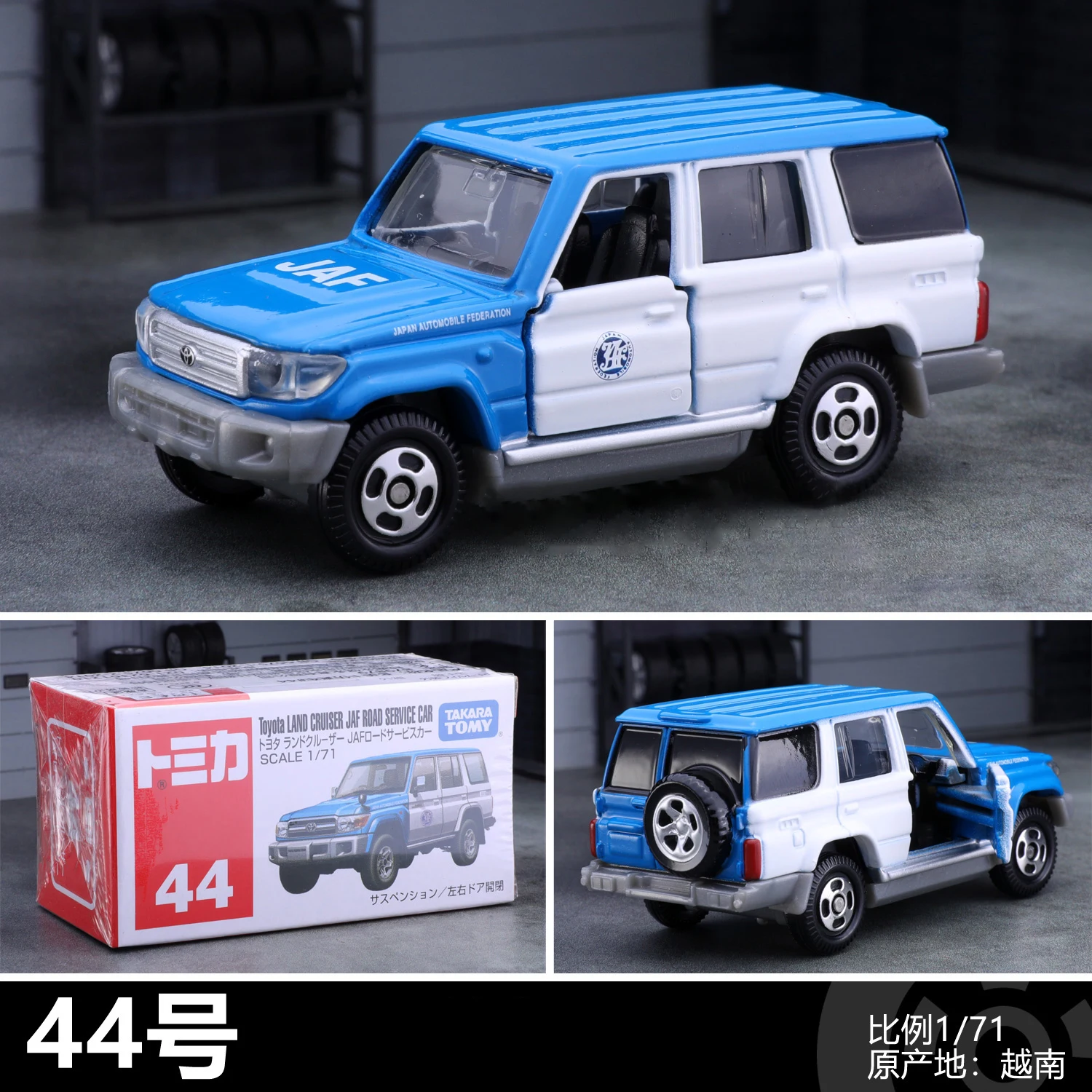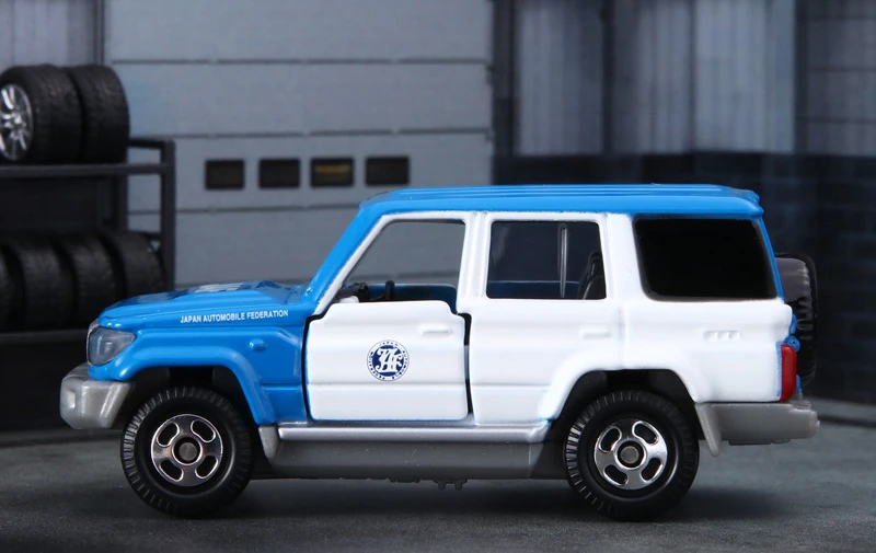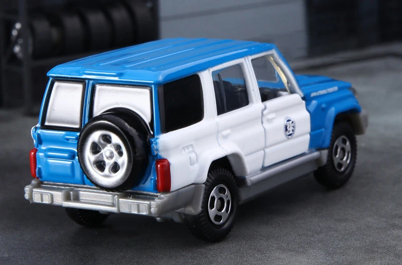 Transform your collection with this highly detailed diecast model of the Toyota Land Cruiser JAF Road Service Car. This miniature replica measures about 7 centimeters in length and is crafted with precision from alloy and plastic, capturing every rugged and boxy detail of the iconic vehicle. Featuring a vibrant blue color with contrasting white accents along the sides and rear, the model exudes realism and durability. Its silver grille, realistic headlights, and textured tires emulate the authentic look of the real Land Cruiser. The model showcases black-lined windows, molded door handles, and intricate rear details like taillights and contours, offering a true-to-life miniature perfect for display or collection. This well-crafted piece makes an ideal gift for enthusiasts or collectors wanting a durable, visually striking miniature.