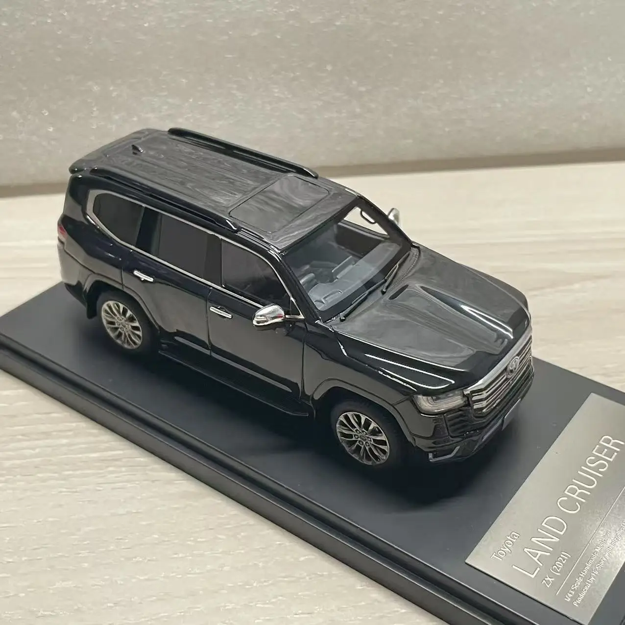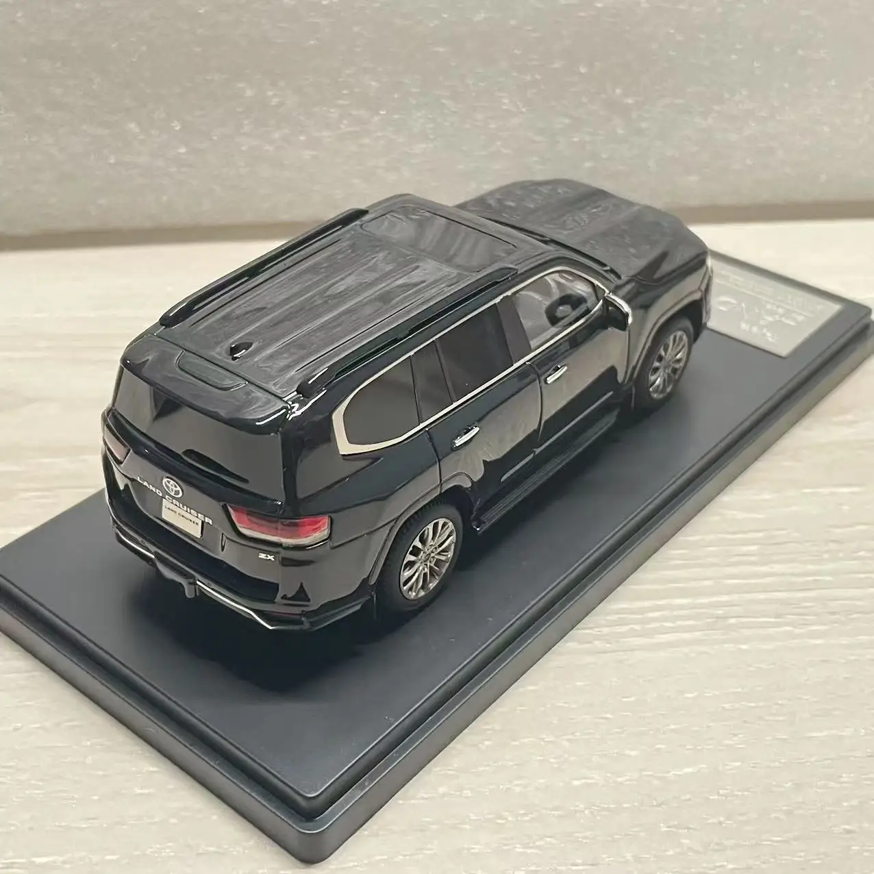 Experience the allure of the Toyota Land Cruiser ZX 2021 with this stunning 1:43 scale resin model car, measuring approximately 10 cm in length. Finished in sleek black, this detailed replica boasts intricate features like a finely crafted front grille and headlights, along with functional rotating wheels for an engaging display. Designed for collectors and enthusiasts, it provides a sophisticated touch to any home decoration. This non-electric model is crafted from durable, non-toxic resin, ensuring it is both safe and visually appealing. Perfect for gifts or personal collections, elevate your space with this exquisite off-road vehicle replica.