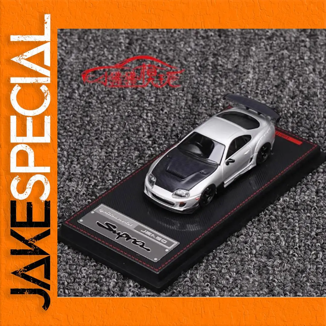 This meticulously crafted 1:64 scale model of the Toyota Supra JZA80 RZ Bull Demon King is a stunning addition to any collection. Featuring a sleek silver finish with a polished metallic shine and an eye-catching black carbon fiber hood, this model exudes sporty elegance. Measuring approximately 7 cm in size, its low profile and well-defined contours reflect the iconic Supra design. Mounted on a sturdy black base with a silver plaque reading “Supra” and fine red stitching, it's perfect for display. Crafted from durable alloy and plastic, this model promises lasting quality for enthusiasts seeking a striking decorative piece.