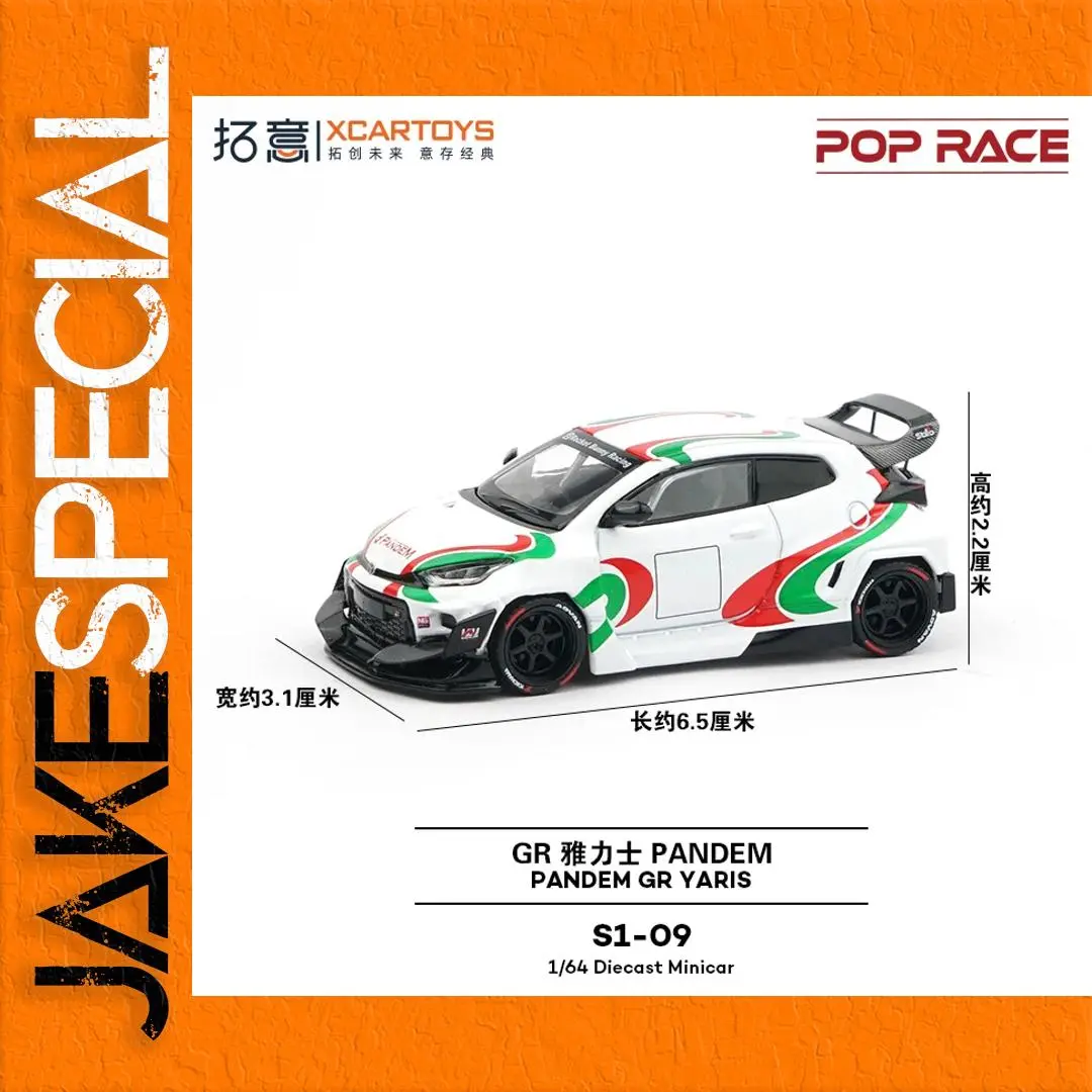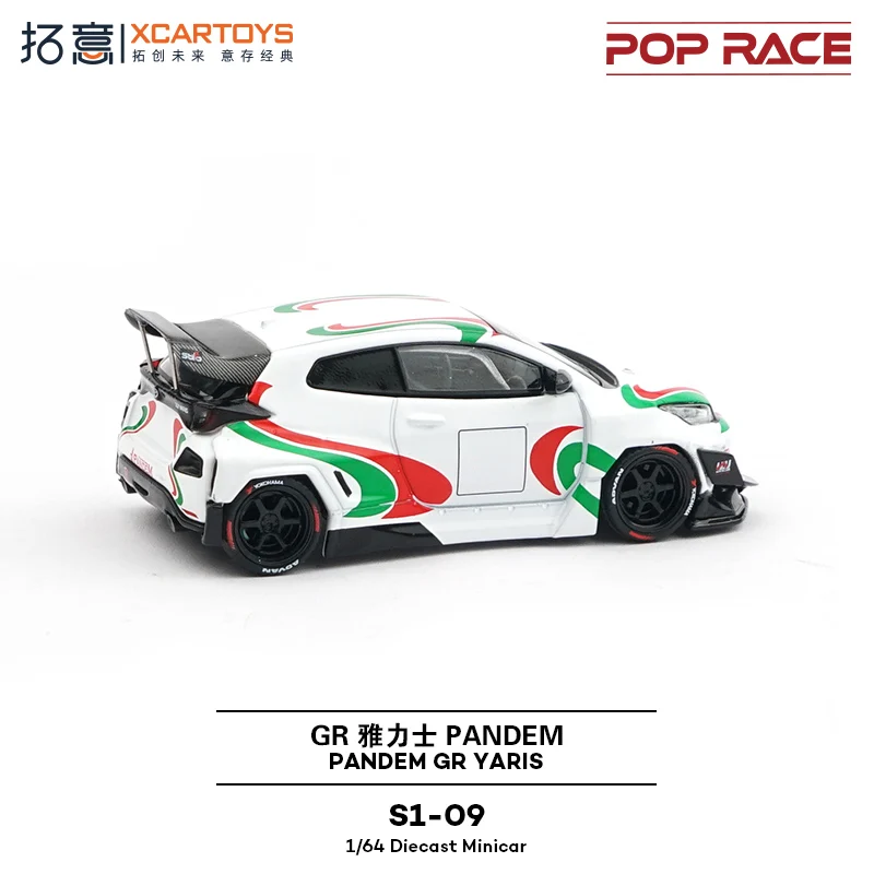 This stunning diecast model of the Toyota Yaris Coupe, specifically the PANDEM GR YARIS version, is designed for collectors and enthusiasts alike. Sporting a sleek white finish with vibrant red and green swirl patterns, it captures the dynamic racing aesthetic perfectly. With meticulous attention to detail, including an aerodynamic body and a prominent rear wing, this model is built from high-quality metal and alloy materials, ensuring durability for display. Its compact size of approximately 7 cm in length makes it a striking addition to any collection or as a centerpiece in your display cabinet. The model number S1-09 signifies its unique charm within the XCARTOYS POP RACE line.