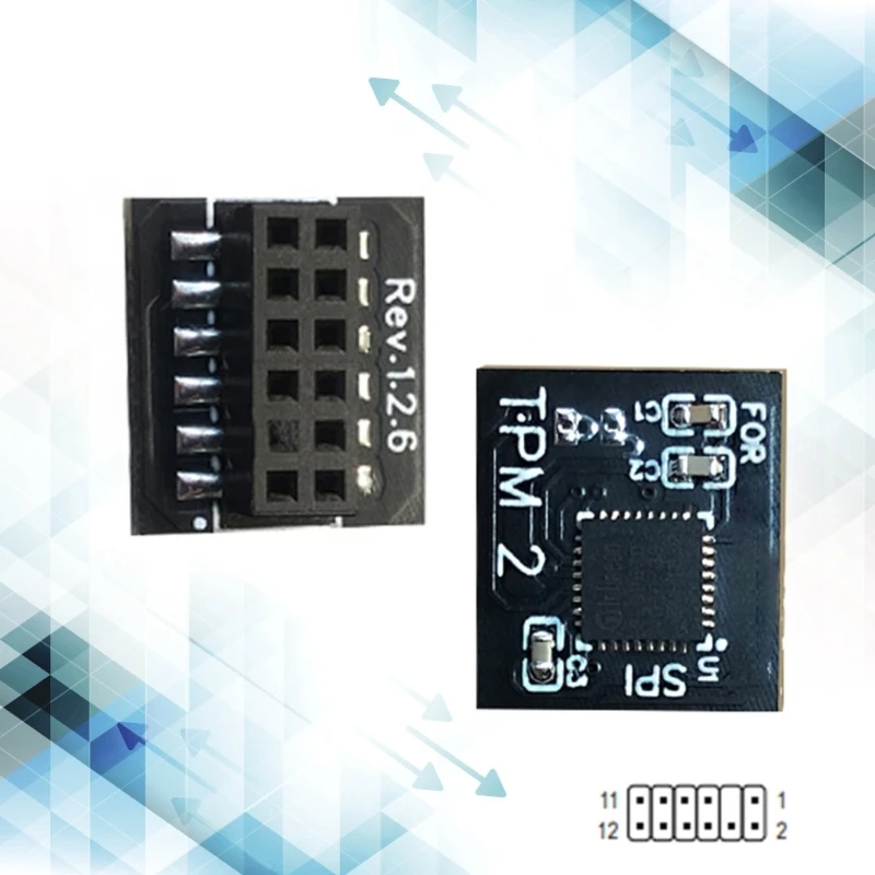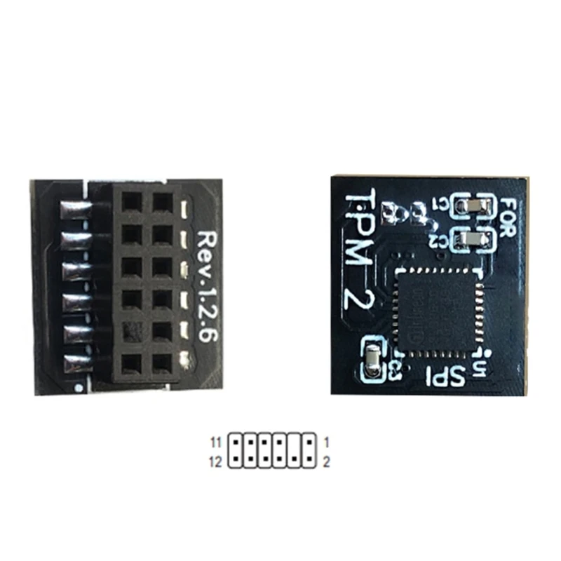 Enhance your computer system's security with this TPM 2.0 Security Module, specifically designed to protect your sensitive data. This compact black printed circuit board features a central rectangular chip that manages data encryption effectively, safeguarding your information against unauthorized access. With a 12Pin SPI connection, installation is straightforward, allowing seamless integration with compatible motherboards. The module complies with the latest TPM 2.0 standards, ensuring your passwords, certificates, and other critical data remain secure. Designed with precision and quality, this item promises reliability for users who value robust digital protection.