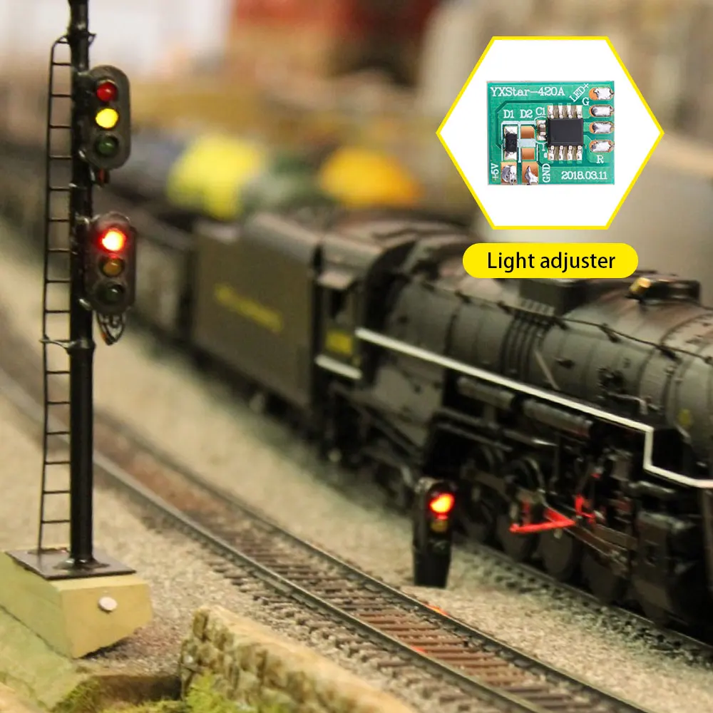 This model electric circuit board is designed for simulating traffic light signals within train railway layout kits, perfect for enhancing your model scenery. At a HO scale of 1:87, it features a vibrant green design with a robust metal construction. The board operates on a voltage range of 5-6V and draws a current of 60mA, ensuring efficient functionality for realistic traffic light effects with a power rating of 0.36W. Offered in package options of 1, 3, or 5 pieces, this dynamic circuit board is an essential component for hobbyists looking to bring their layouts to life with striking red, yellow, and green signals.