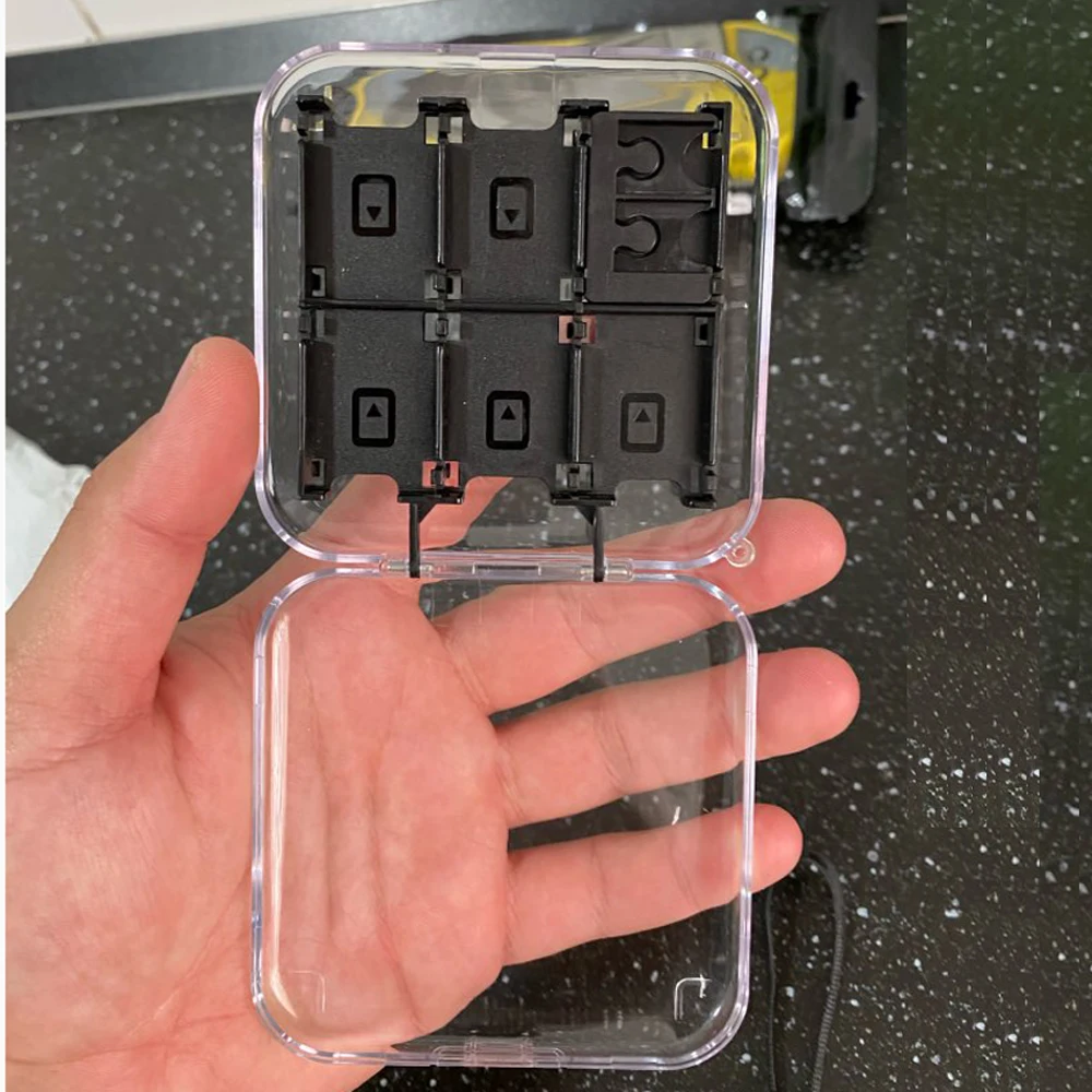 Imagine elevating your gaming experience with this sleek, transparent case designed specifically for Nintendo Switch game cards. Its minimalist aesthetic combines clear, durable plastic with a modern square shape, showcasing your collection at a glance. The interior features six black plastic slots arranged in a neat 3×2 grid, each with downward-pointing indicators for quick, effortless card insertion and removal. Secured by a hinged lid with black clips, this case guarantees your valuable game cards stay protected and organized. The included black woven lanyard adds portability, allowing you to carry your collection comfortably during gaming sessions or travel. Its clean design complements any style while providing practical and stylish storage.