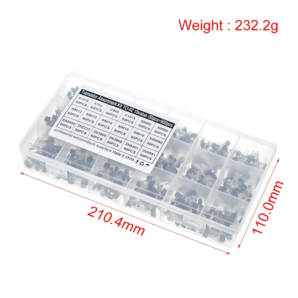 - Ideal for storing 900 pieces of electronic components including transistor and diode models such as S8050, S8550, 2N2222, 2N3904, 2N3906, S9013, S9014, S9015, S9018, SS8050, SS8550, and 2N5551 in SMD packages.