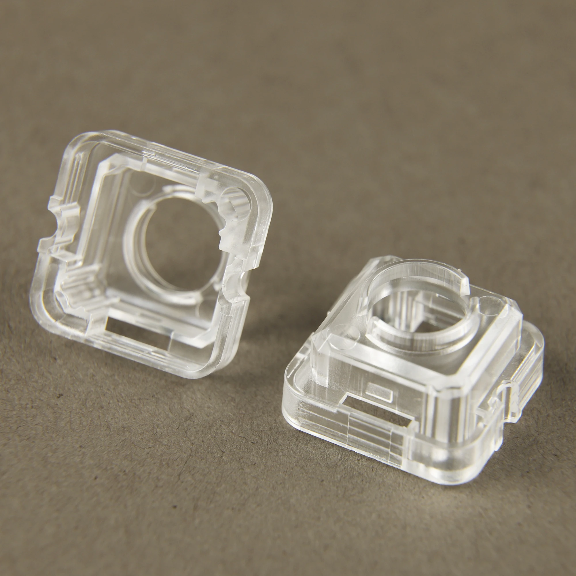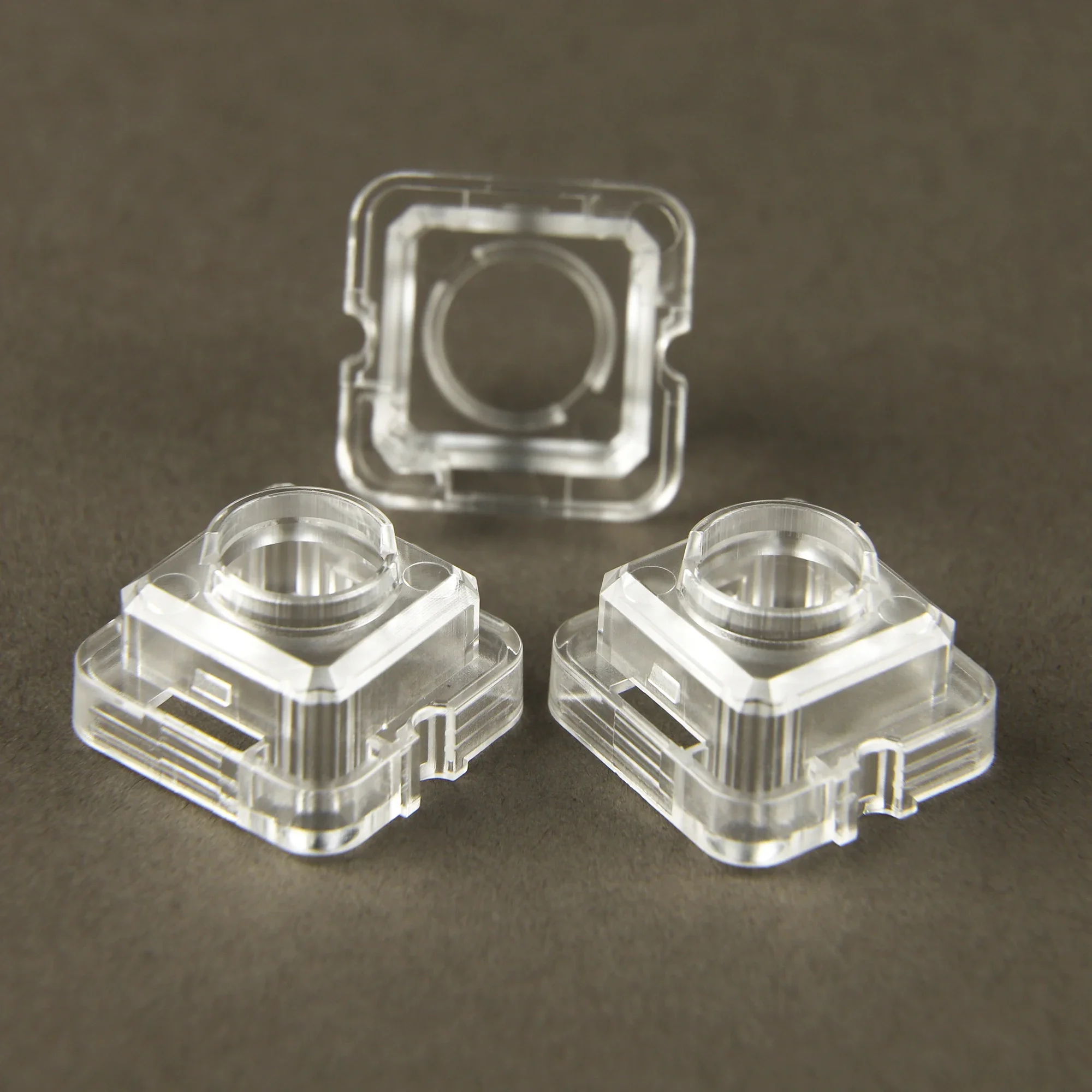 Experience the clean, minimalist design of this high-quality capacitive keyboard switch housing, specially crafted for easy replacement and customization. Made from transparent, durable plastic, it allows you to see the internal components, showcasing the precise engineering and functional design. The square shape features slightly beveled edges and small notches along the sides, ensuring seamless integration with your keyboard setup. Its open circular top structure provides easy switch installation, while the internal supports keep everything secure. Perfect for enhancing the look and feel of your Topre, Realforce, DES, or Leopold 980C/660C keyboard. Whether you're upgrading or repairing, these housings offer a sleek, modern aesthetic along with reliable performance in your custom keyboard projects.