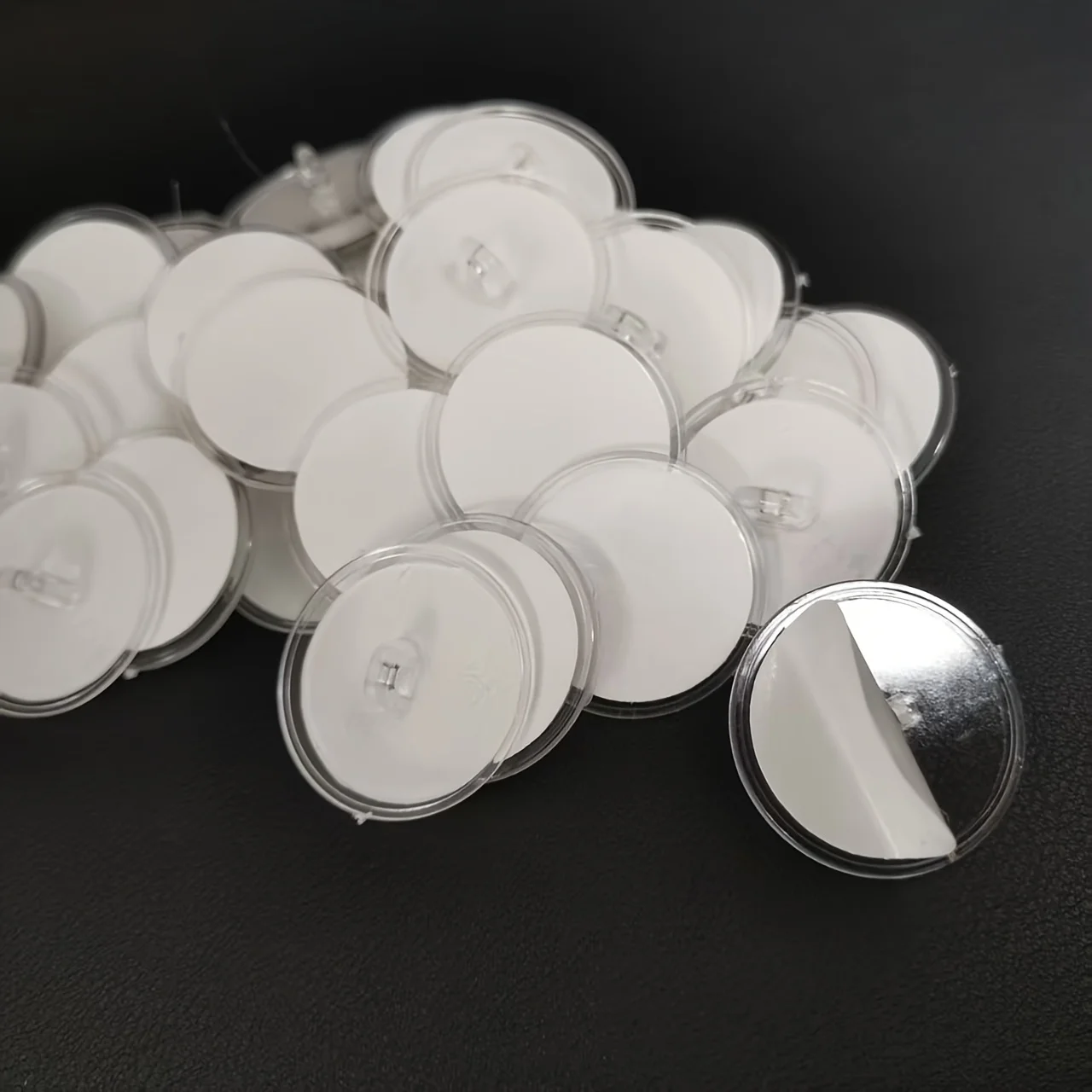 - Each hook features an oval-shaped, flat disc base with a smooth, glossy surface, slightly raised edge, providing a sleek modern aesthetic while holding items firmly.