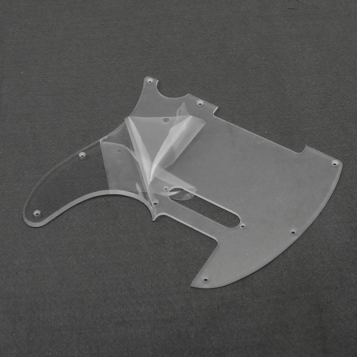 Discover the sleek, minimalist charm of this this transparent pickguard designed specifically for USA/Mexico standard 8-hole Fender Telecaster style guitars. Crafted from a clear, 1-ply PVC material, it provides a clean and modern aesthetic that subtly complements your guitar’s natural finish. Its smooth glossy surface highlights the curves and contours of your instrument, allowing its beauty to shine through. The pickguard’s outline precisely mirrors the classic Telecaster shape, with carefully drilled holes for easy installation. Its transparency adds a subtle touch of sophistication, letting your guitar’s body and hardware remain the focal point. Light, durable, and environmentally friendly, this pickguard is a perfect upgrade or replacement for your guitar setup, ensuring a seamless blend of form and function.