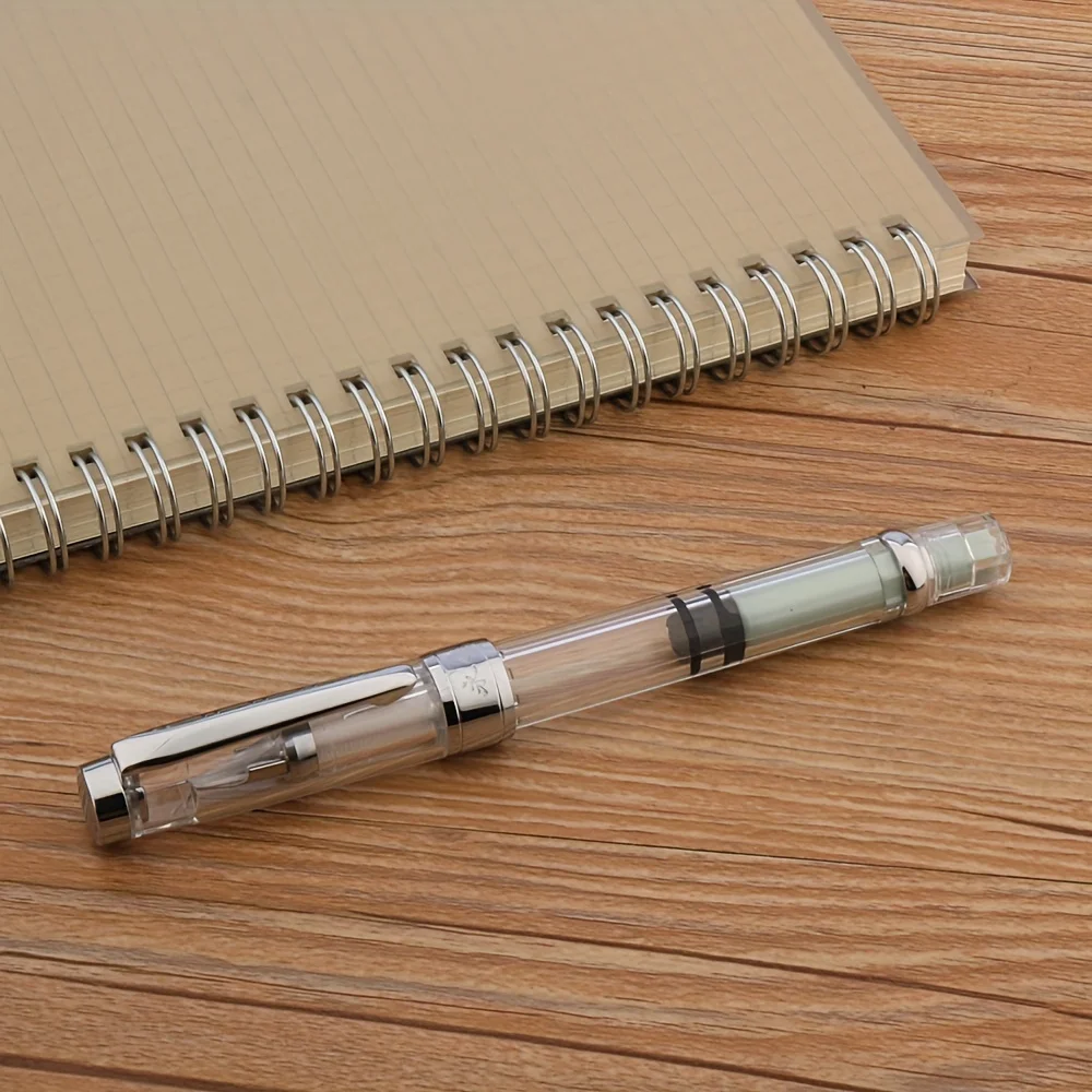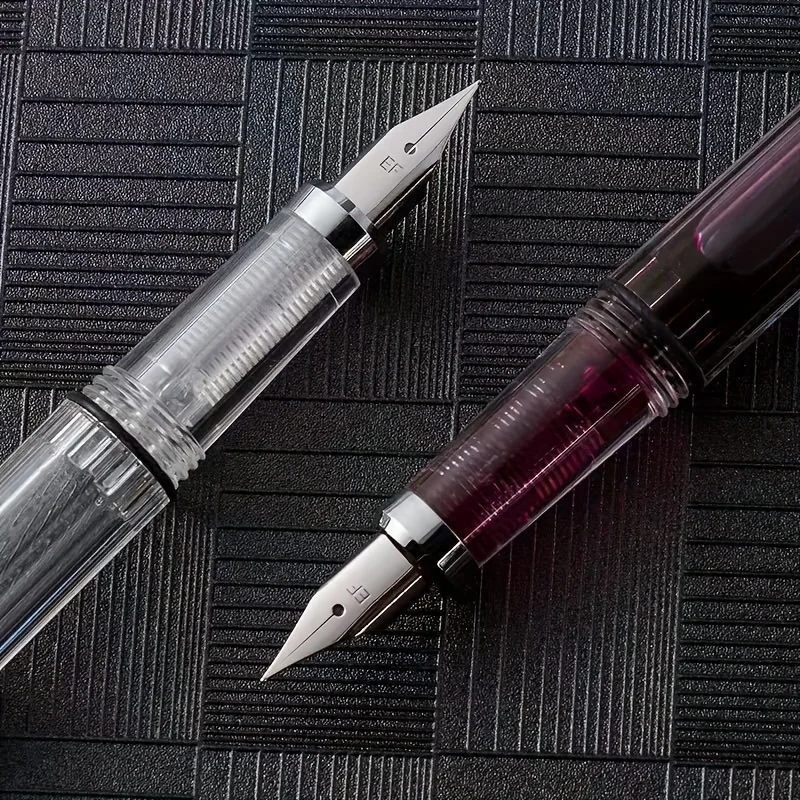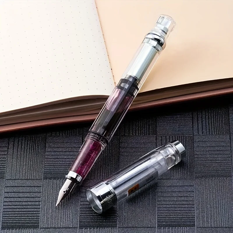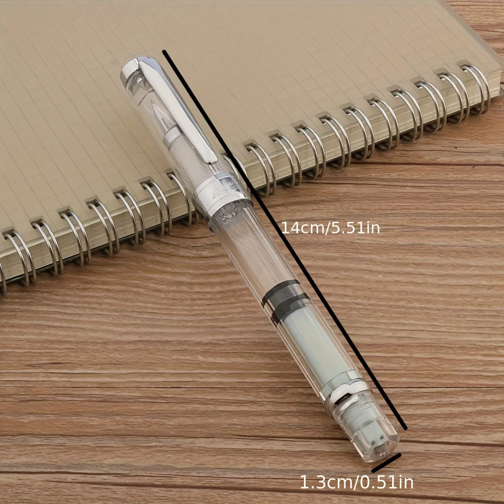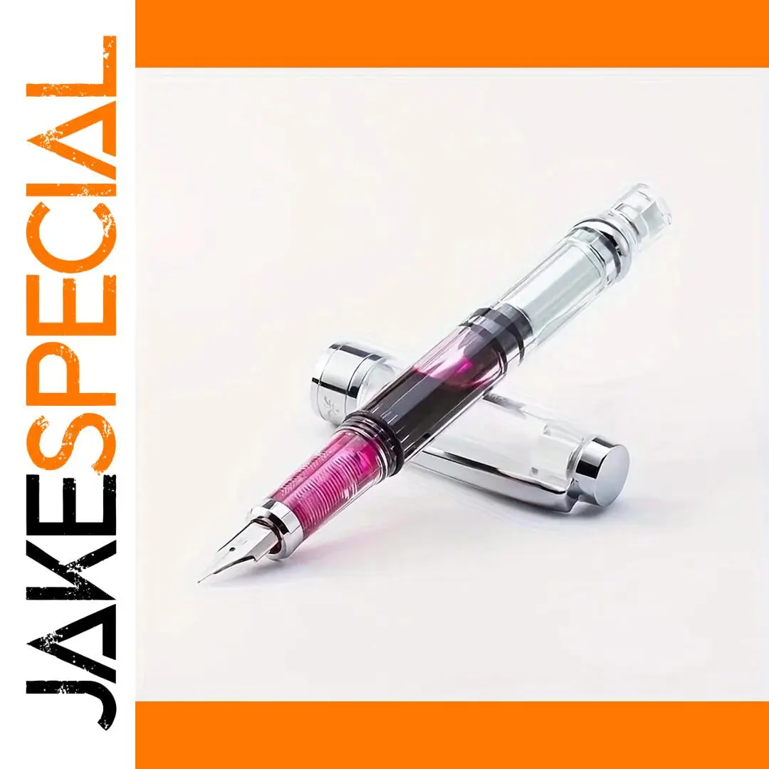 Imagine elevating your writing experience with this stunning transparent piston fountain pen. Crafted with a graceful acrylic body, it offers full visibility of the internal ink chamber, showcasing the vibrant pink ink and highlighting its modern, sleek design. The stainless steel nib, available in fine (F) and extra fine (EF) sizes, ensures precise, smooth strokes suitable for professional or personal use. Its piston mechanism allows you to effortlessly fill the pen with colored ink, making every note or signature unmistakably elegant. Weighing just 25 grams and measuring 140mm in length with a 13mm diameter, this pen perfectly balances form and function. Its minimalist style, enhanced by metallic accents, makes it a sophisticated choice for any writing occasion.