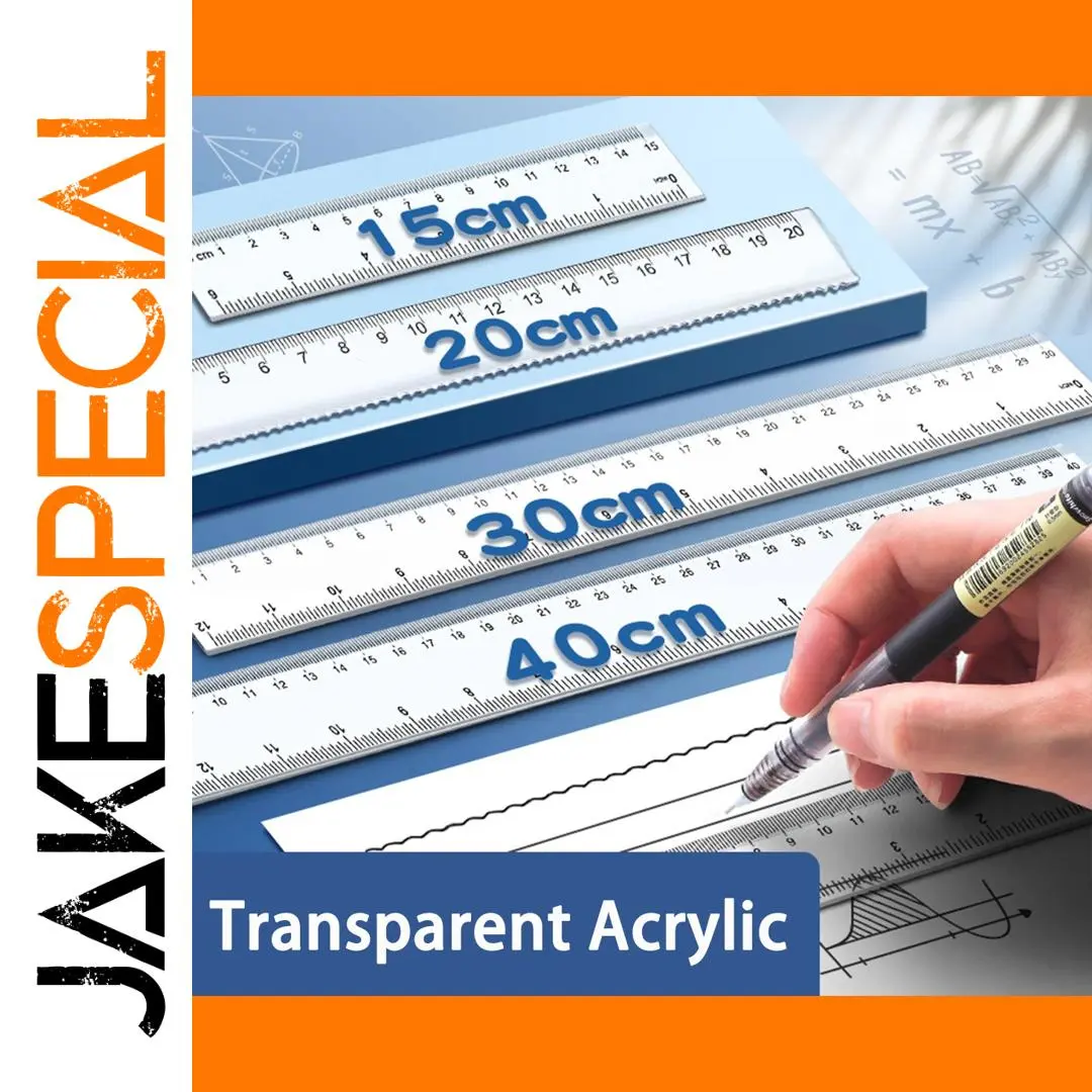 - This transparent plastic ruler comes in 15 cm, 20 cm, and 30 cm lengths, offering versatile options for various measurement needs in educational and professional settings.